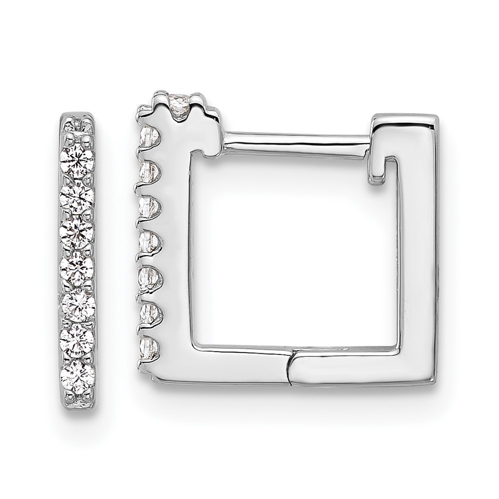 Cheryl M Sterling Silver Rhodium-plated Brilliant-cut CZ Square Hinged Post Hoop Earrings
