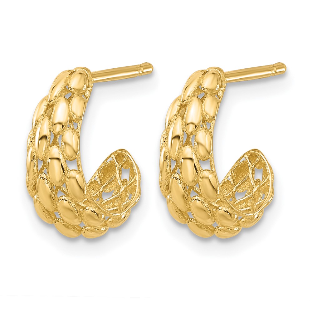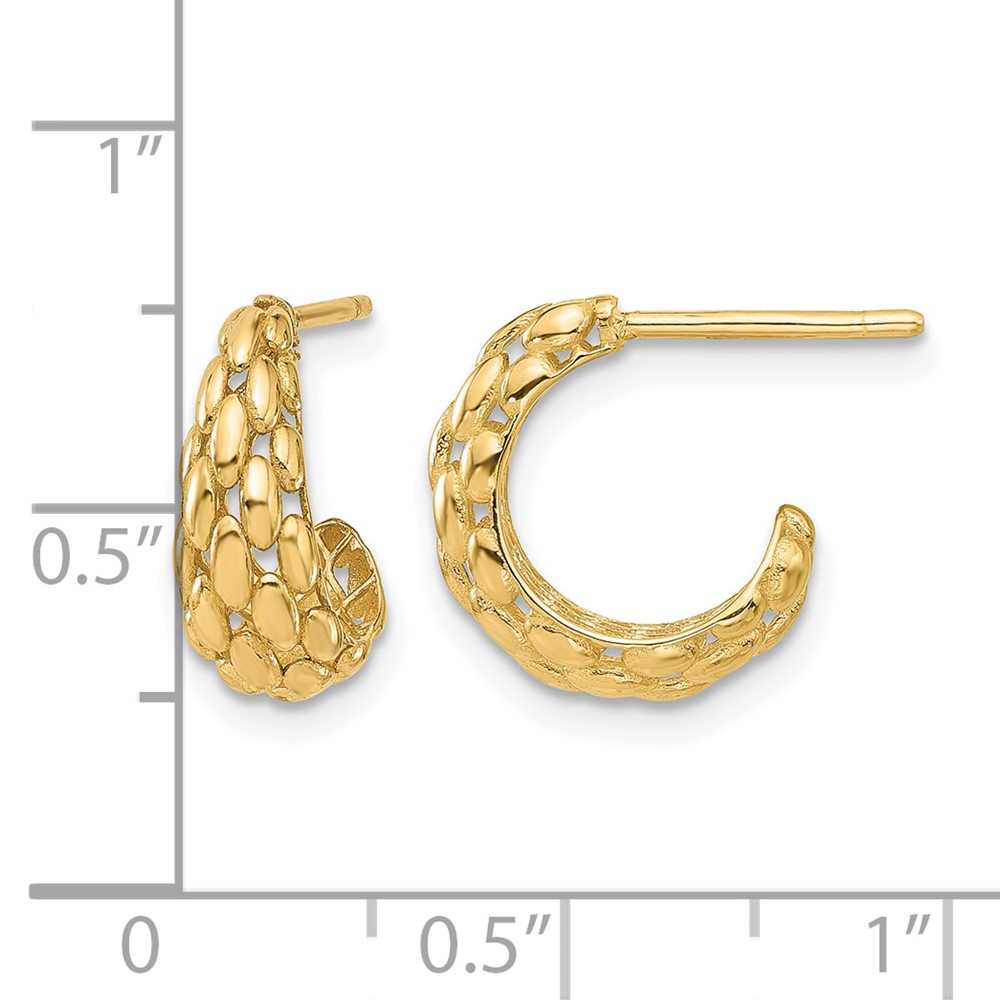 Leslie's 14K Polished and Textured J-Hoop Post Earrings
