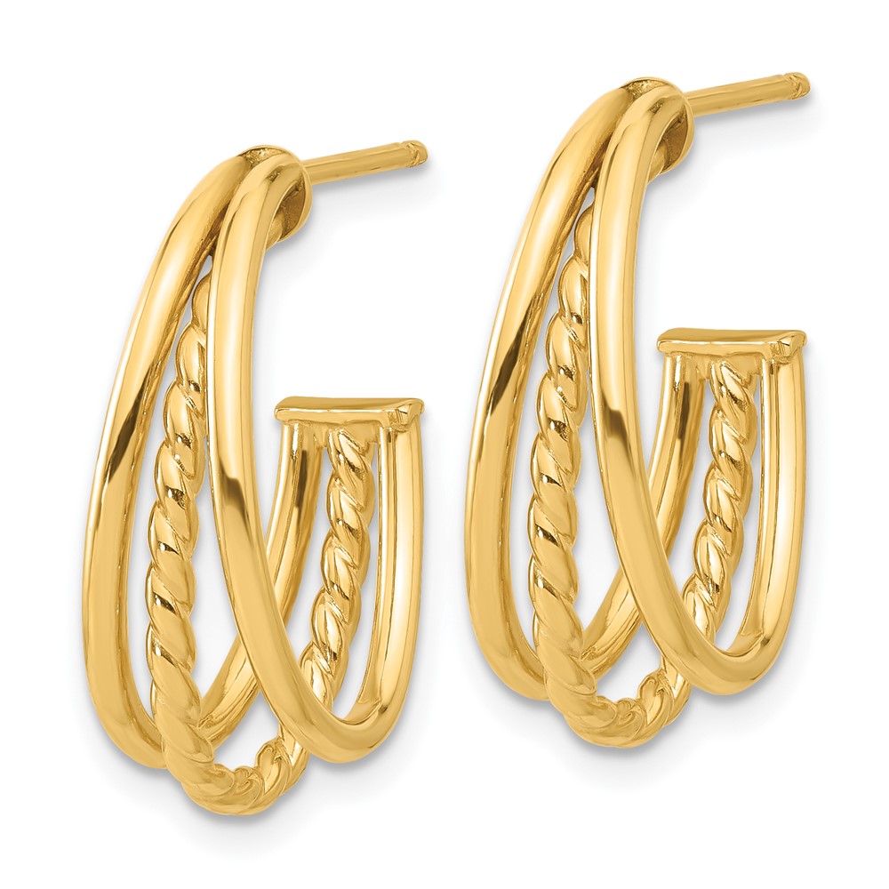 14K Polished and Twist Oval Multi Row J-Hoop Post Earrings