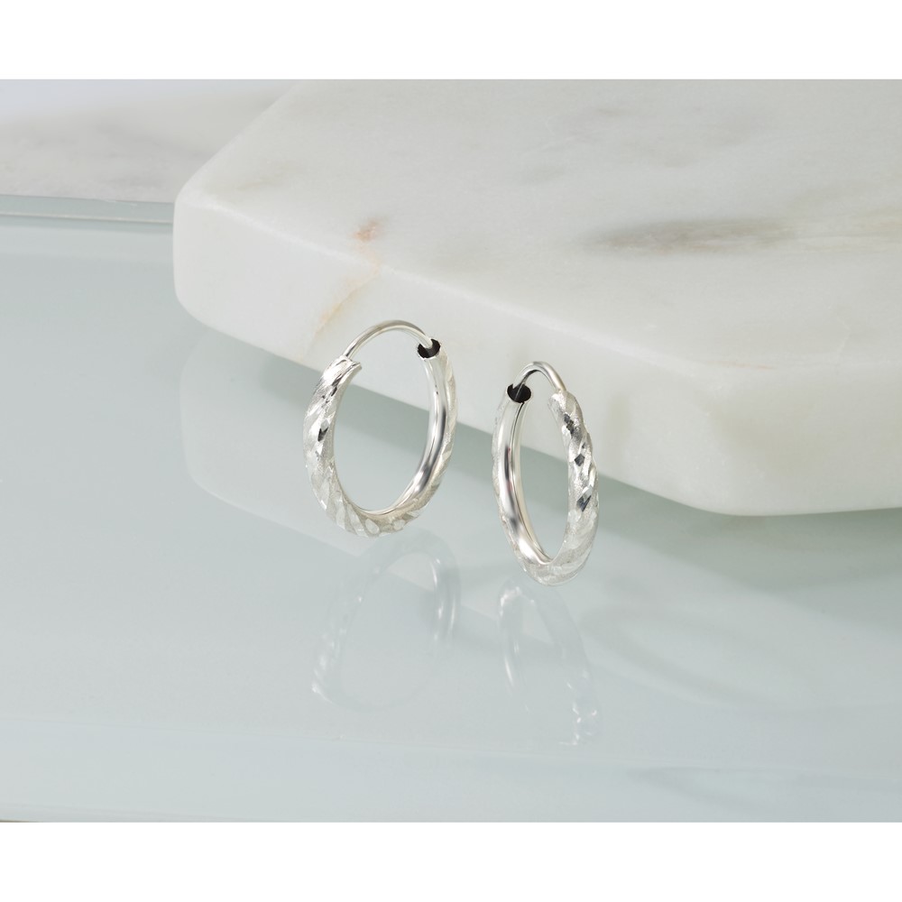 2mm Satin Diamond-cut Endless Gold Hoop Earrings