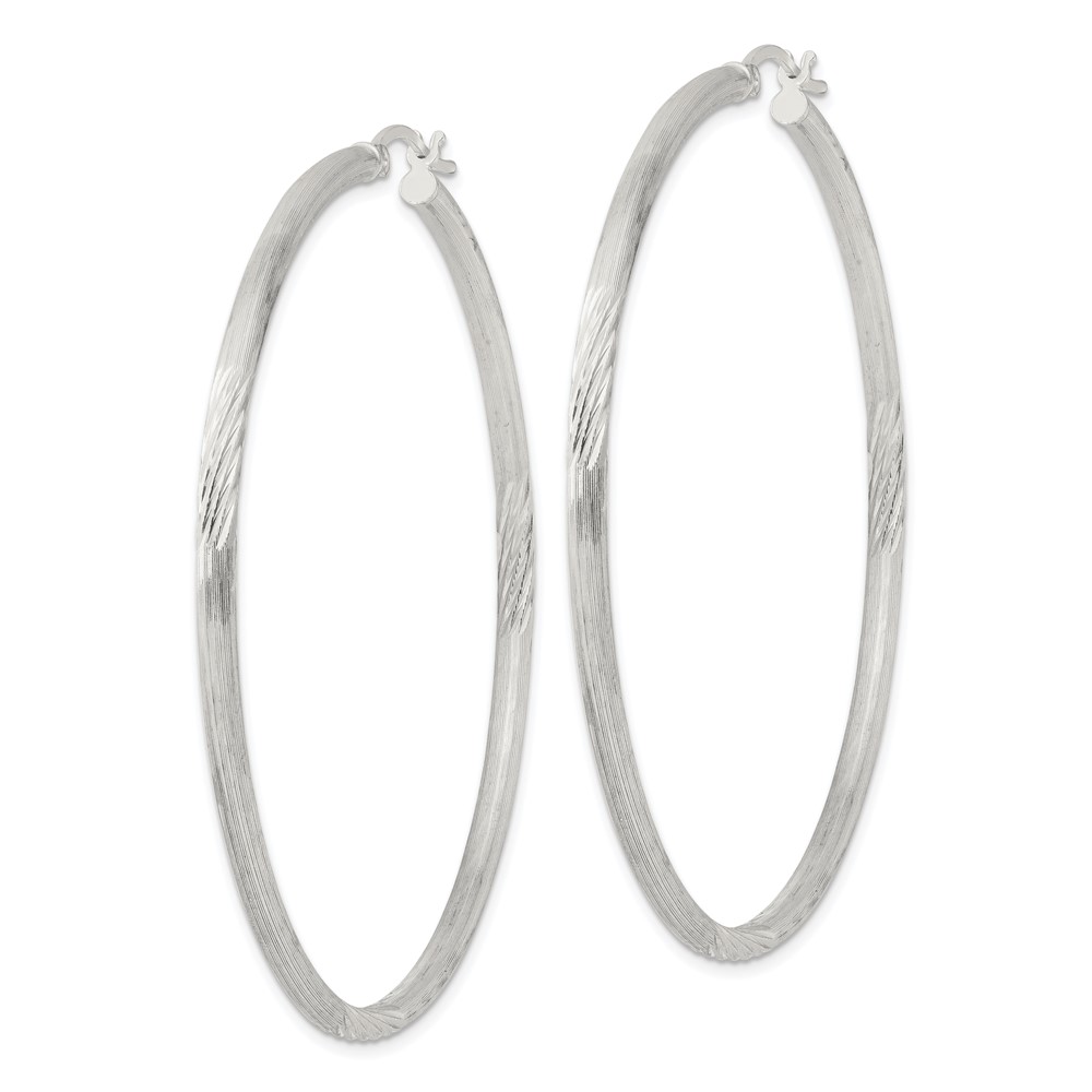 Sterling Silver 2.5mm Polished/Satin D/C Hoop Earrings