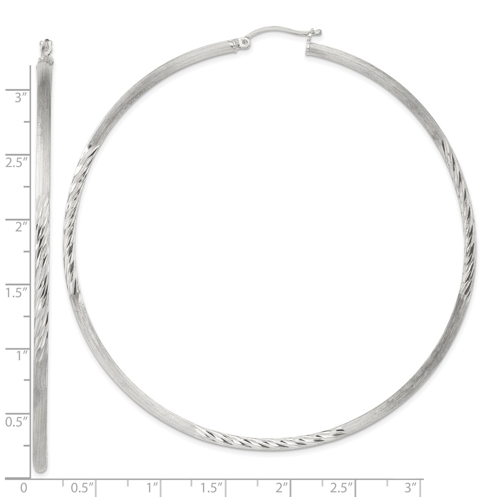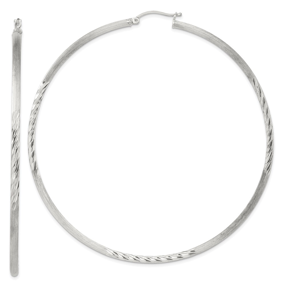 Sterling Silver 2.5mm Polished/Satin D/C Hoop Earrings