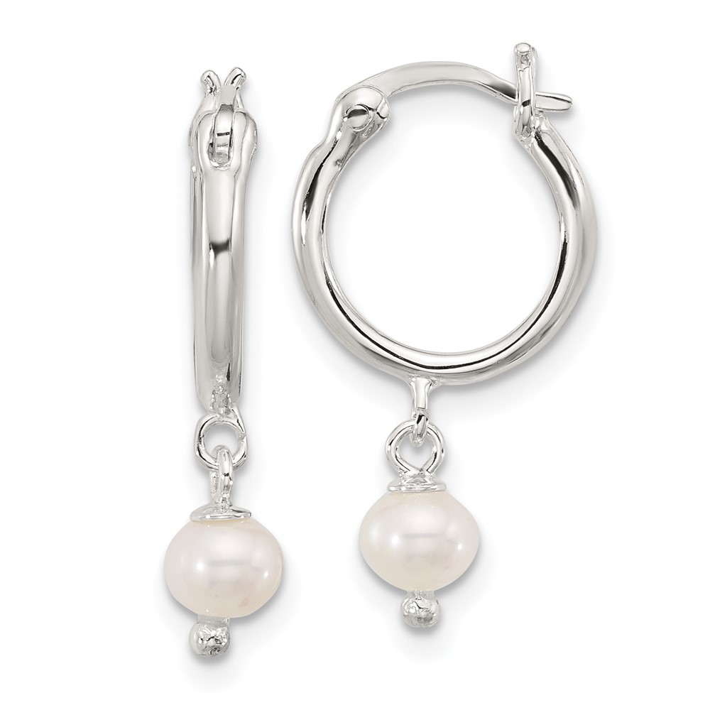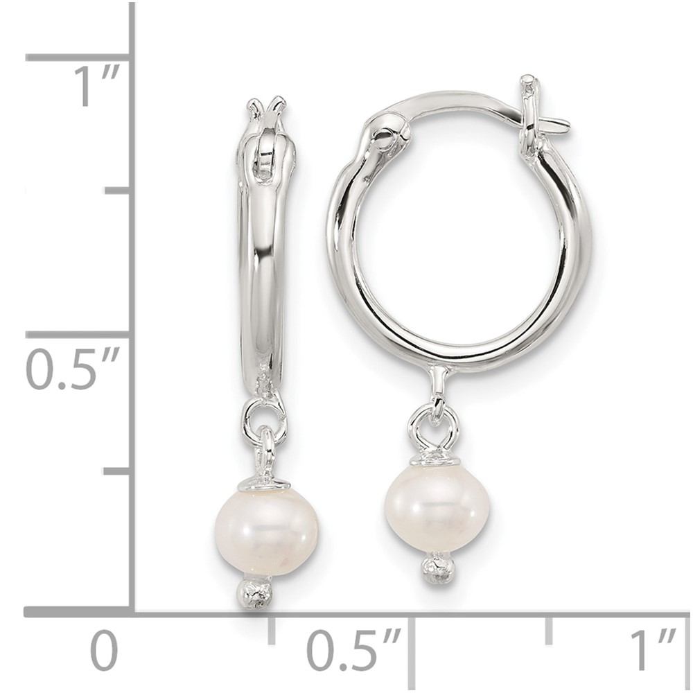 Sterling Silver Polished FWC Pearl Dangle Round Hoop Earrings