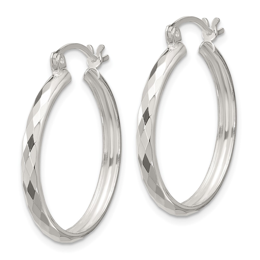 Sterling Silver 3.0mm Diamond-cut Hoop Earrings