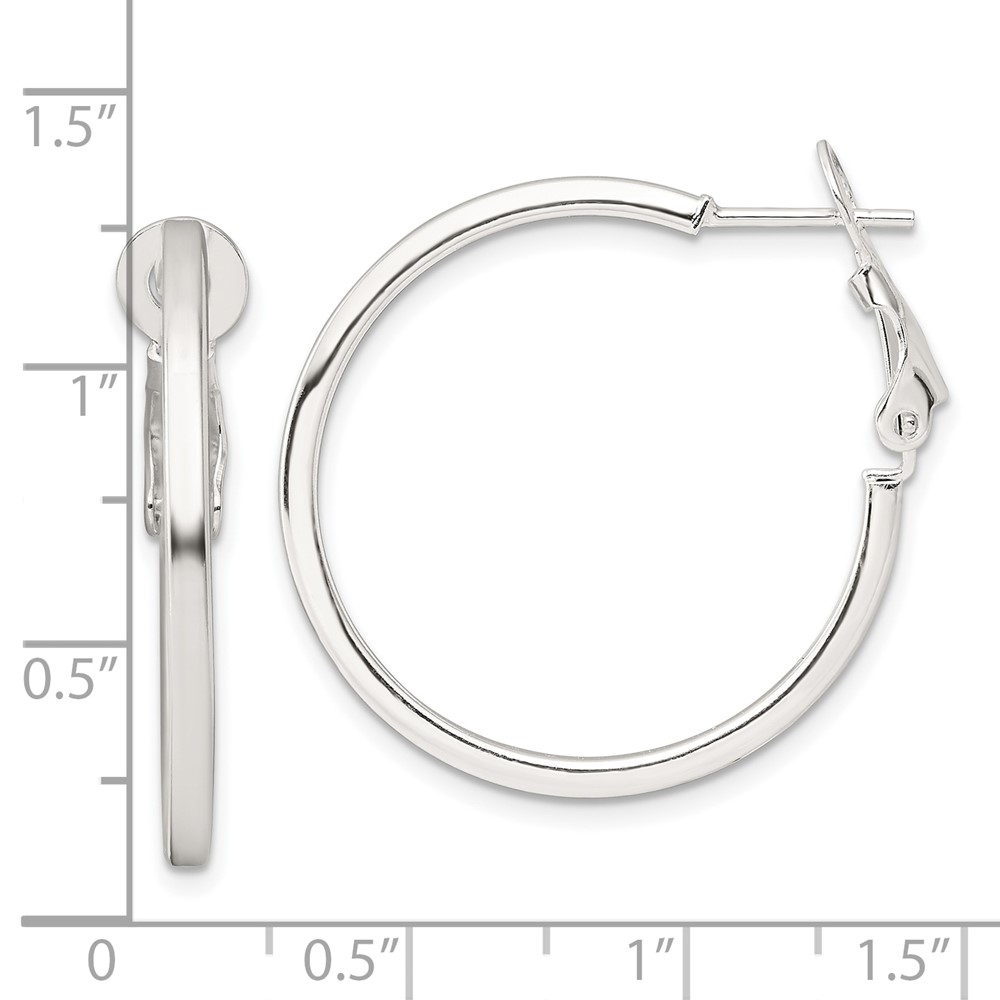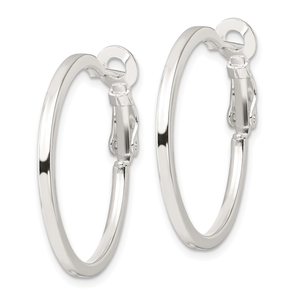 Sterling Silver 2mm Square Tube Omega Back Round Hoop Earrings