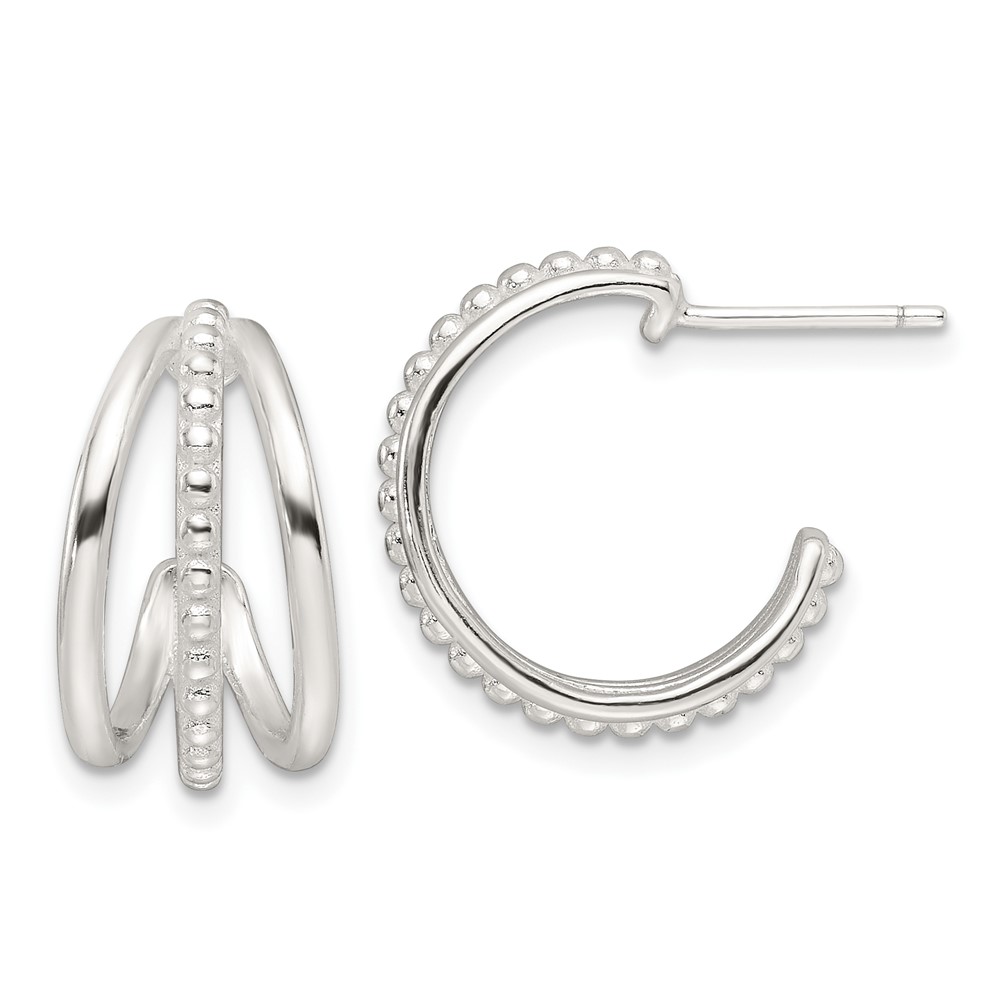 Sterling Silver Triple C-hoop Post Earrings