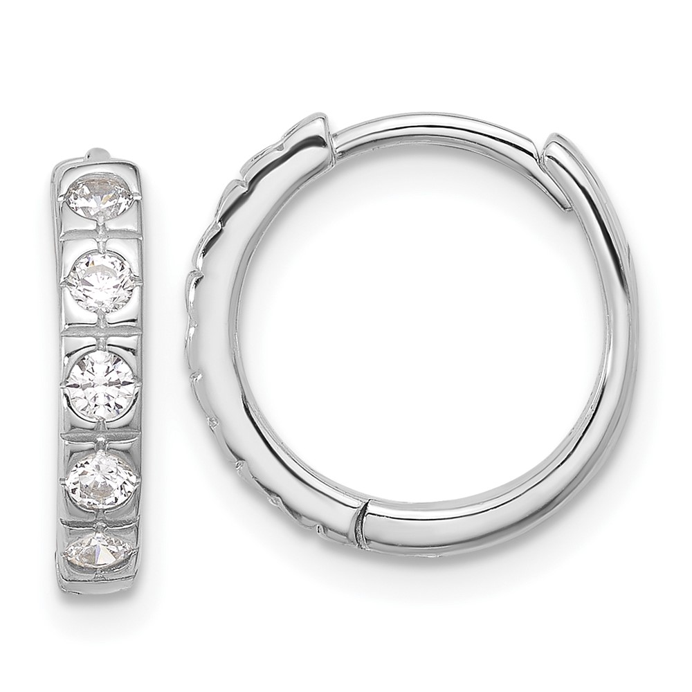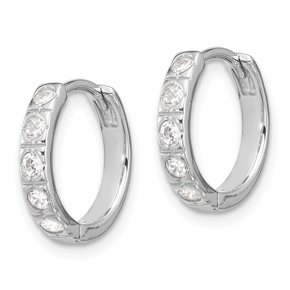 Sterling Silver Rhodium-plated CZ 2.75mm Hinged Hoop Earrings