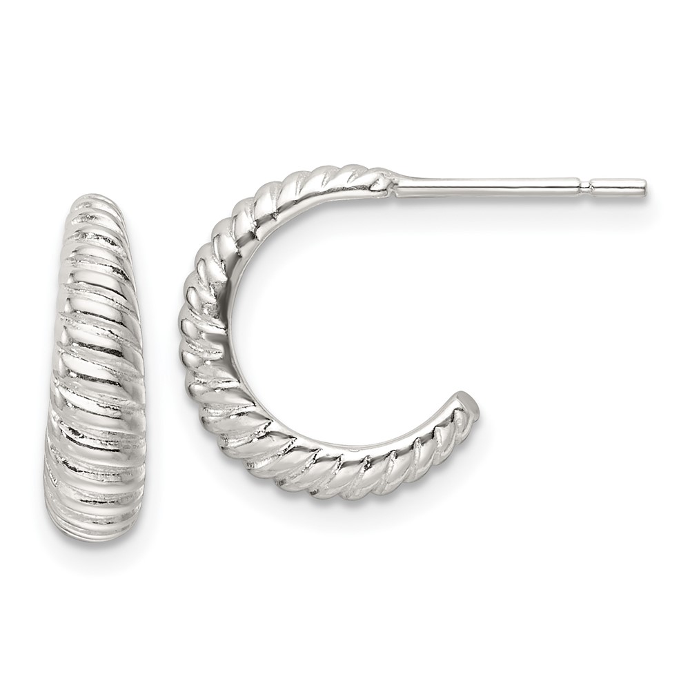 Sterling Silver Grooved C-hoop Post Earrings