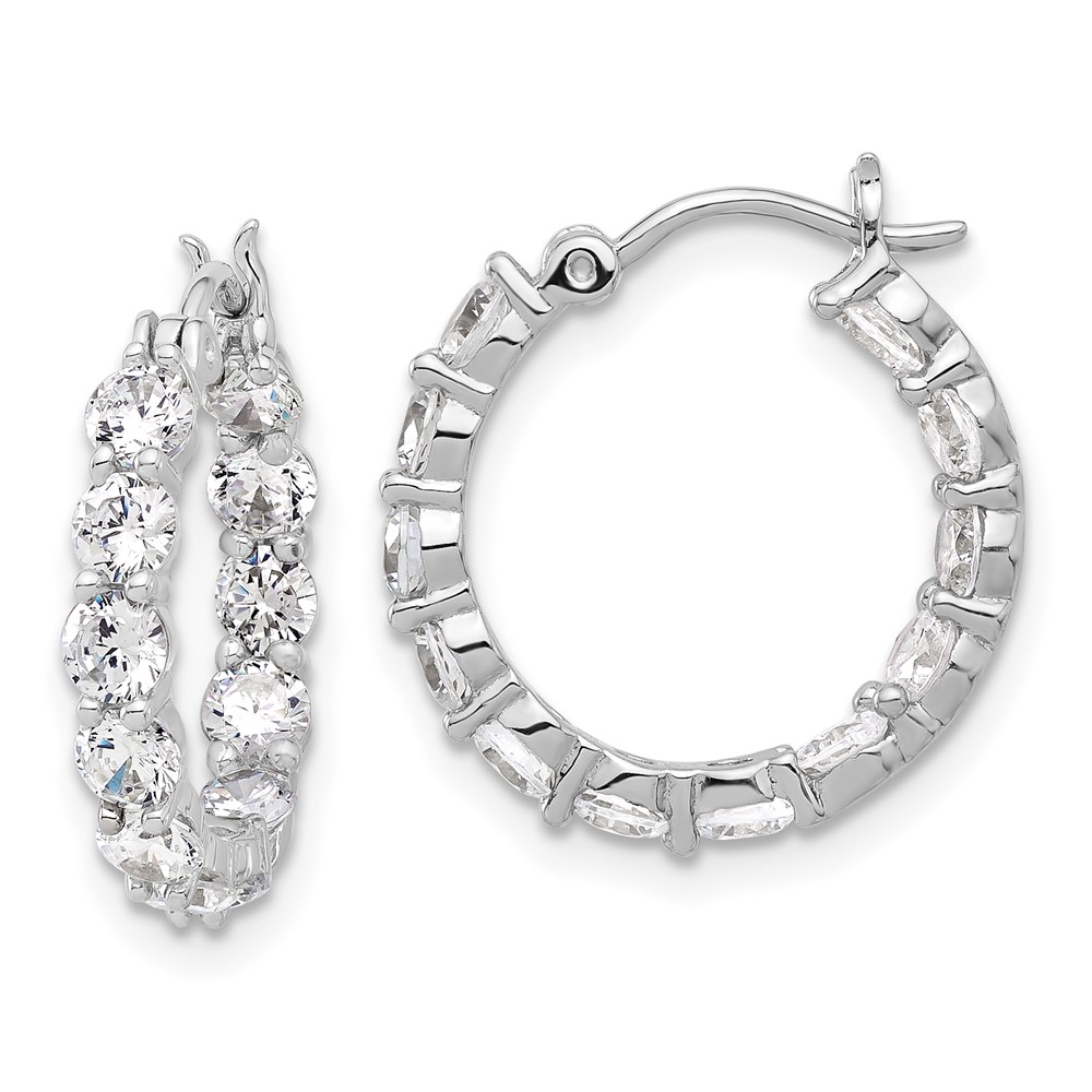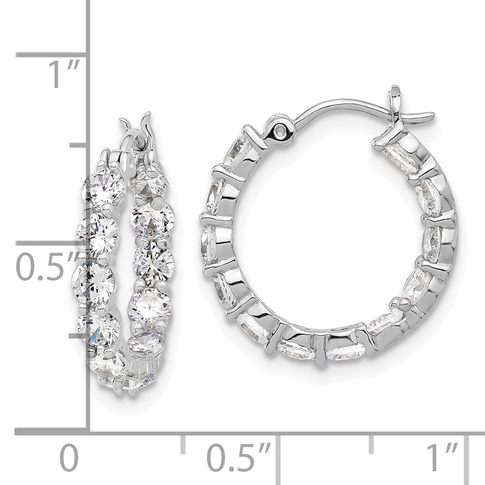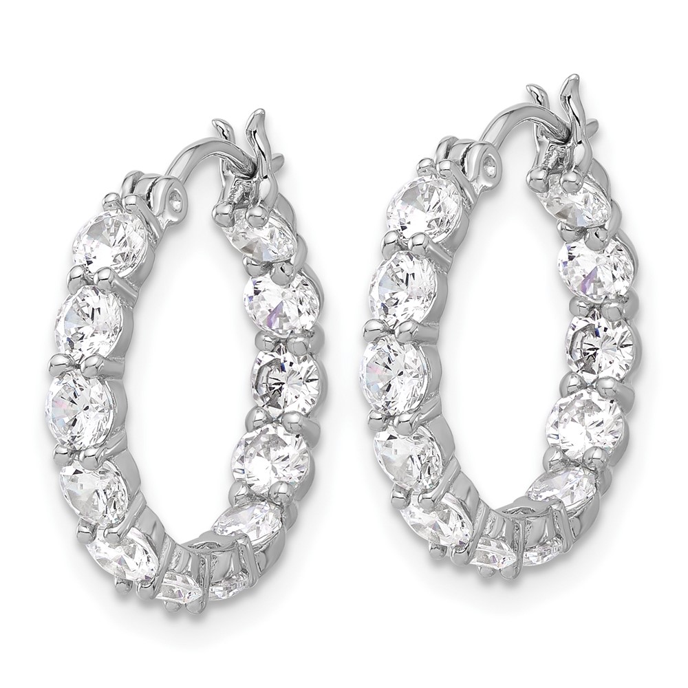 Sterling Silver Rhodium-plated In and Out CZ Hoop Earrings