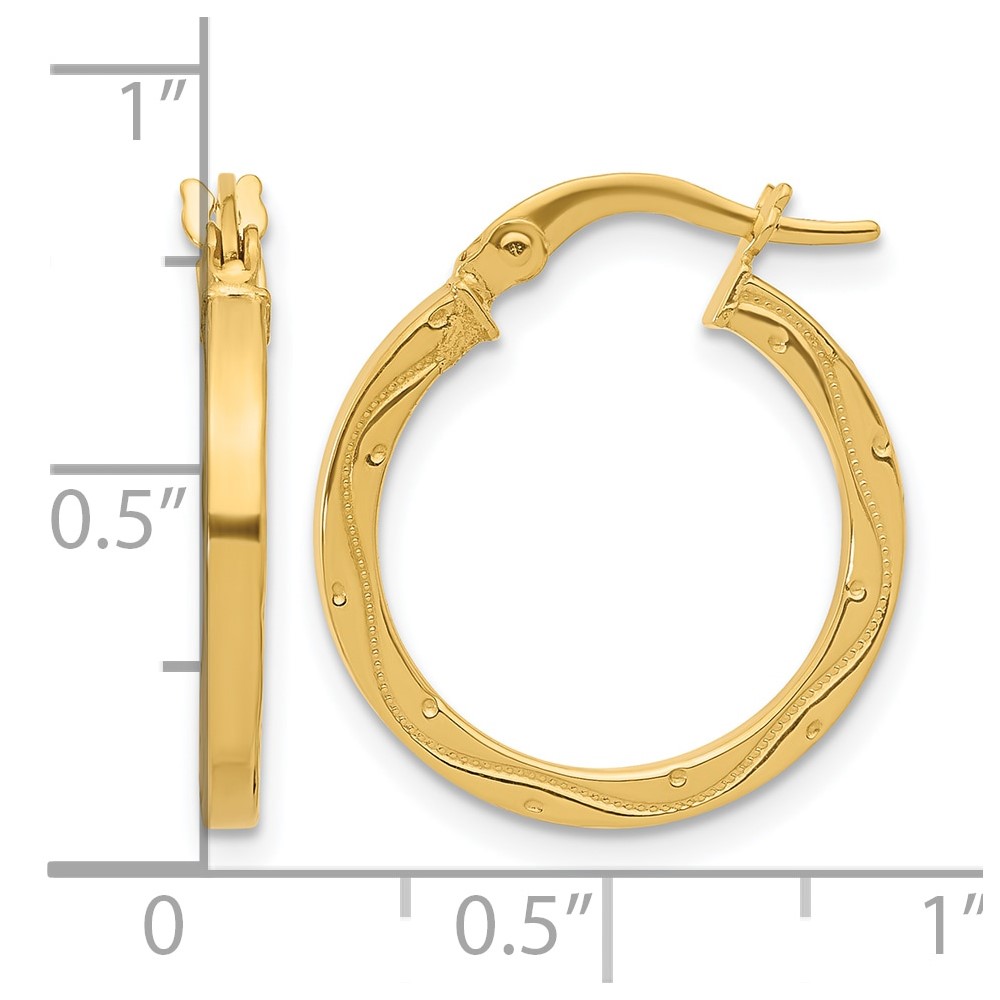 Leslie's 14k Polished and Textured Square Tube Hoop Earrings