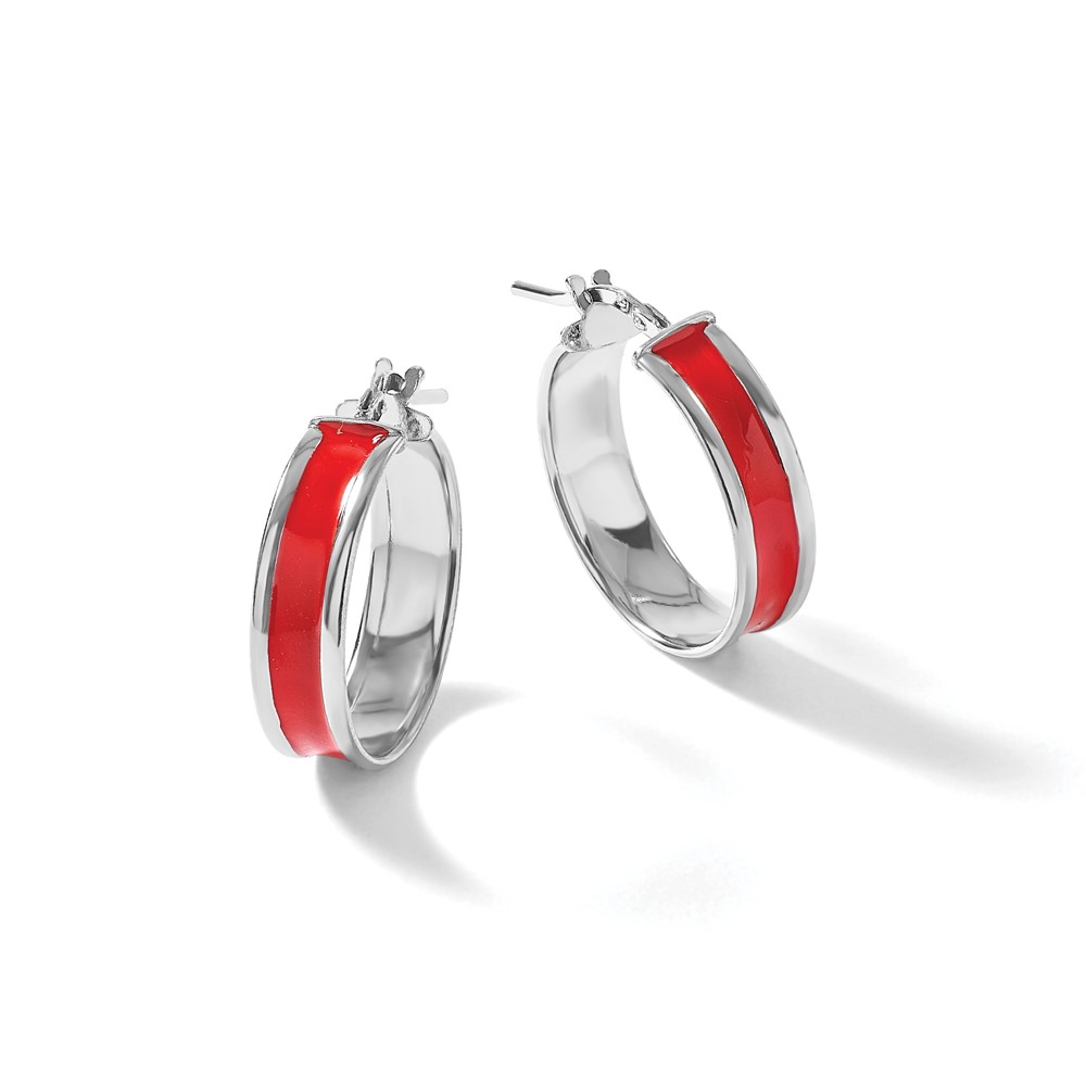 Leslie's Sterling Silver Polished with Enamel Hoop Earrings