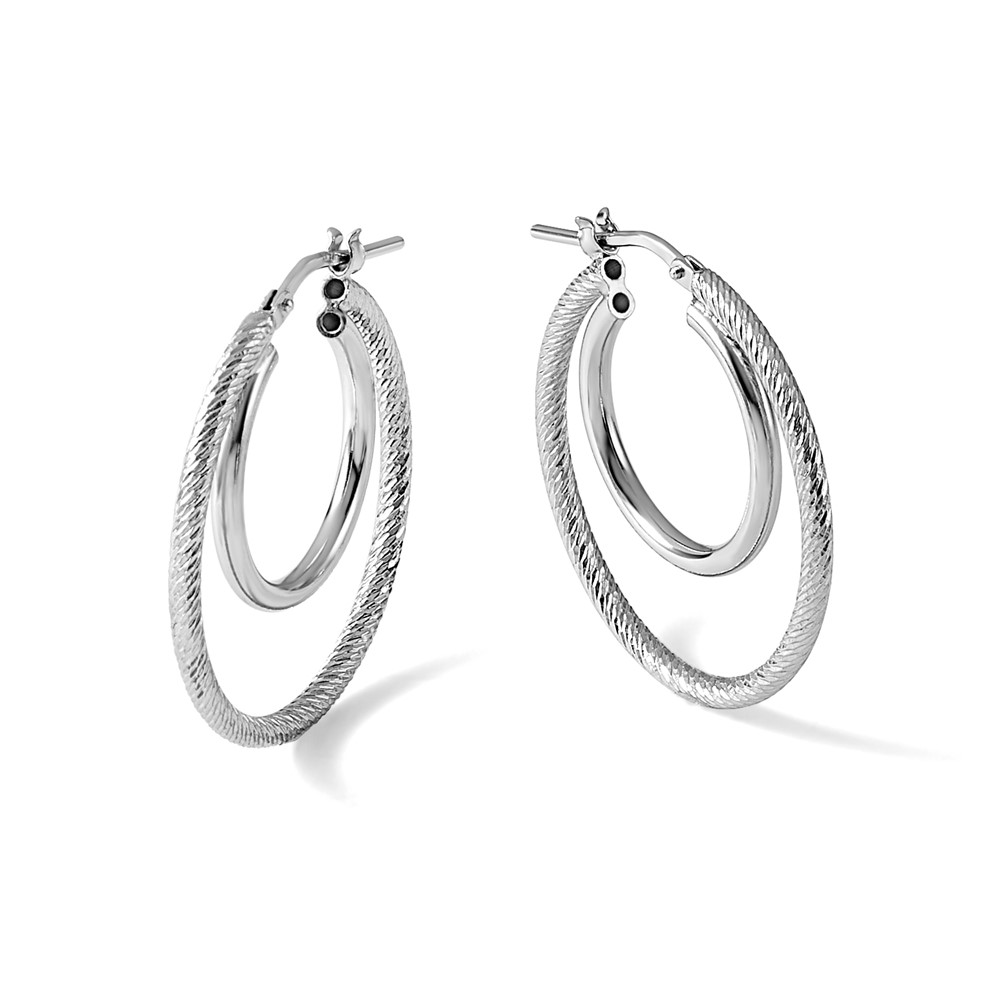 Leslie's Sterling Silver Rh-plat Polished and Textured Double Hoop Earrings