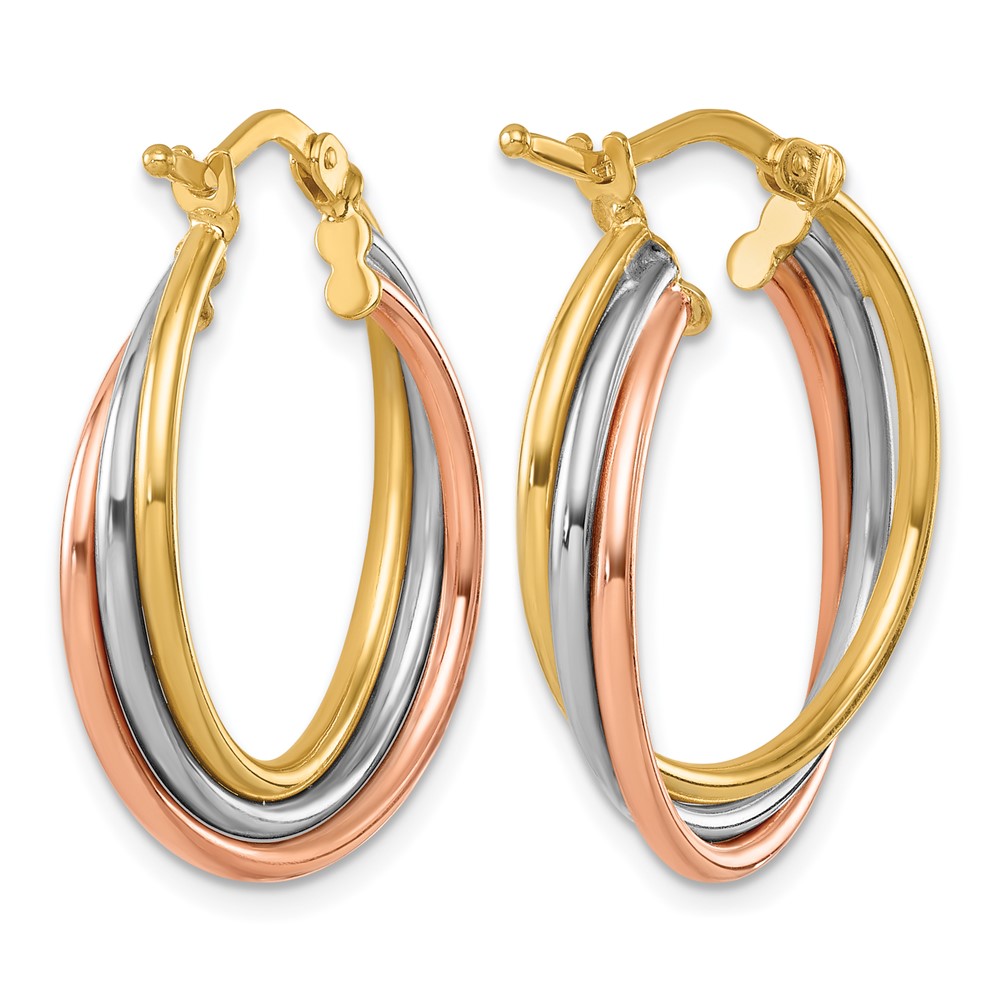 Herco 14K Tri-color Polished Triple Wire Round Hoop Earrings