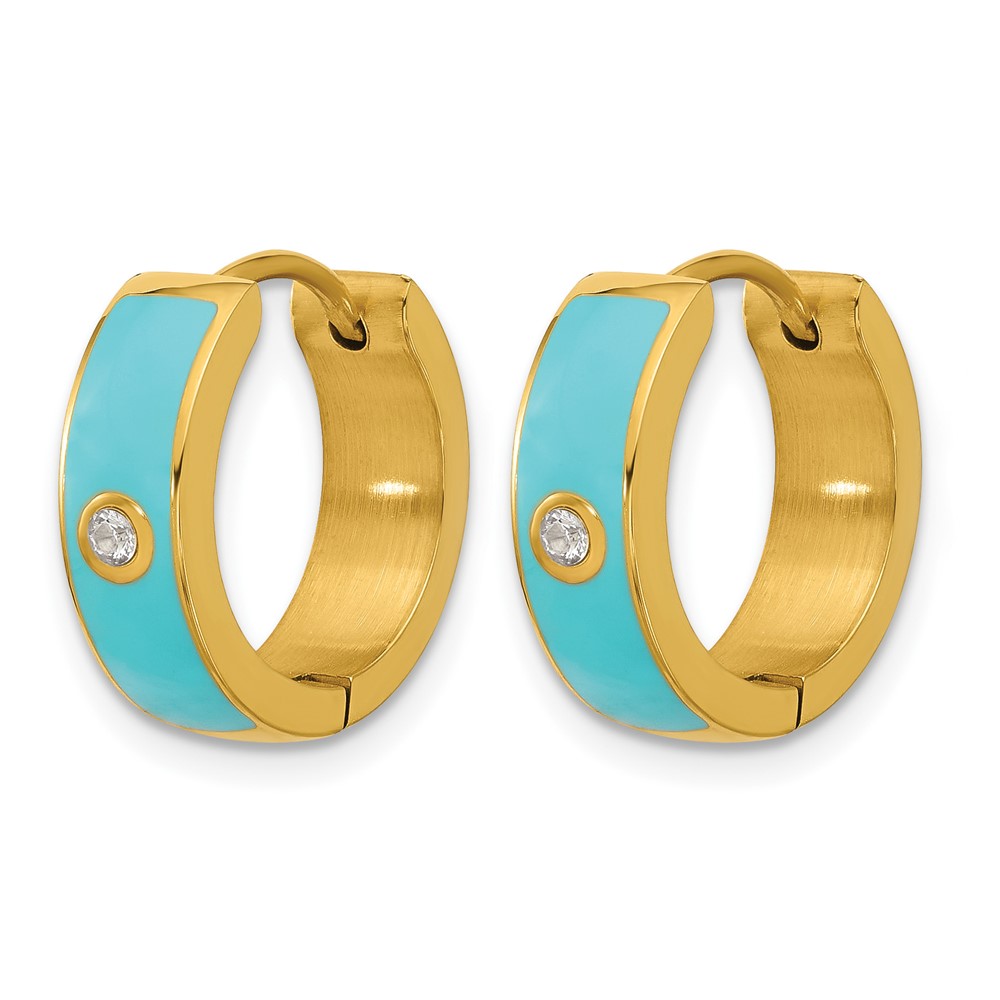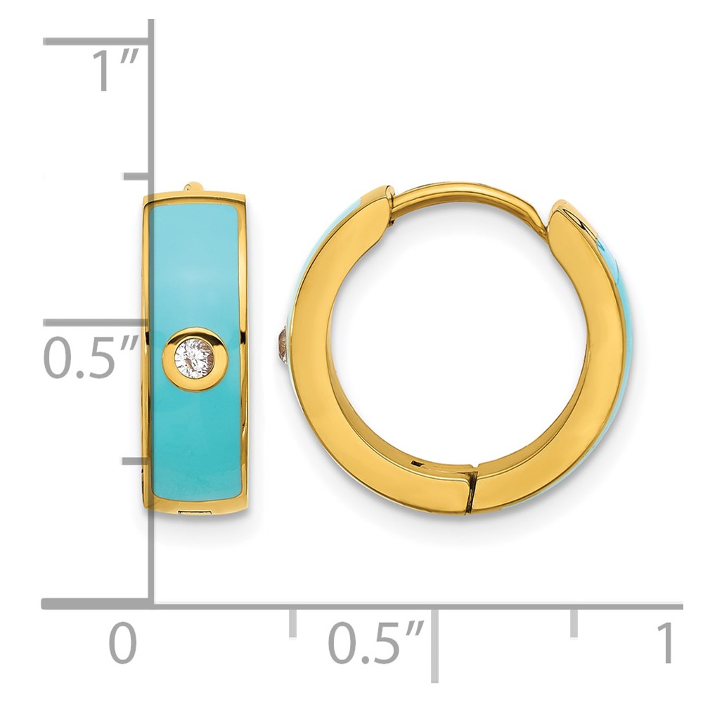 Chisel Stainless Steel Polished Yellow IP-plated with Blue Enamel and CZ 5mm Hinged Hoop Earrings
