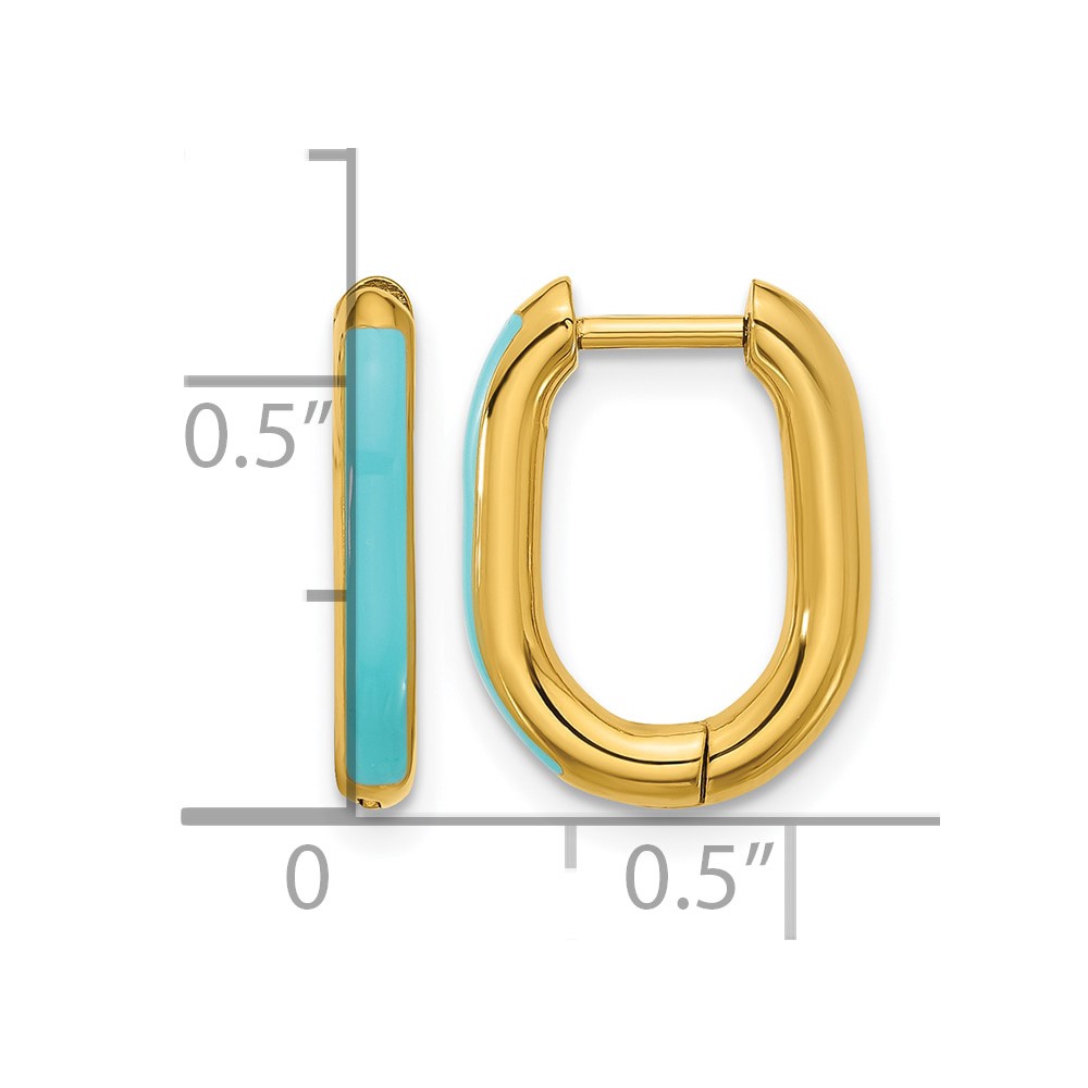 Chisel Stainless Steel Polished Yellow IP-plated with Blue Enamel 2.40mm Elongated Hinged Hoop Earrings