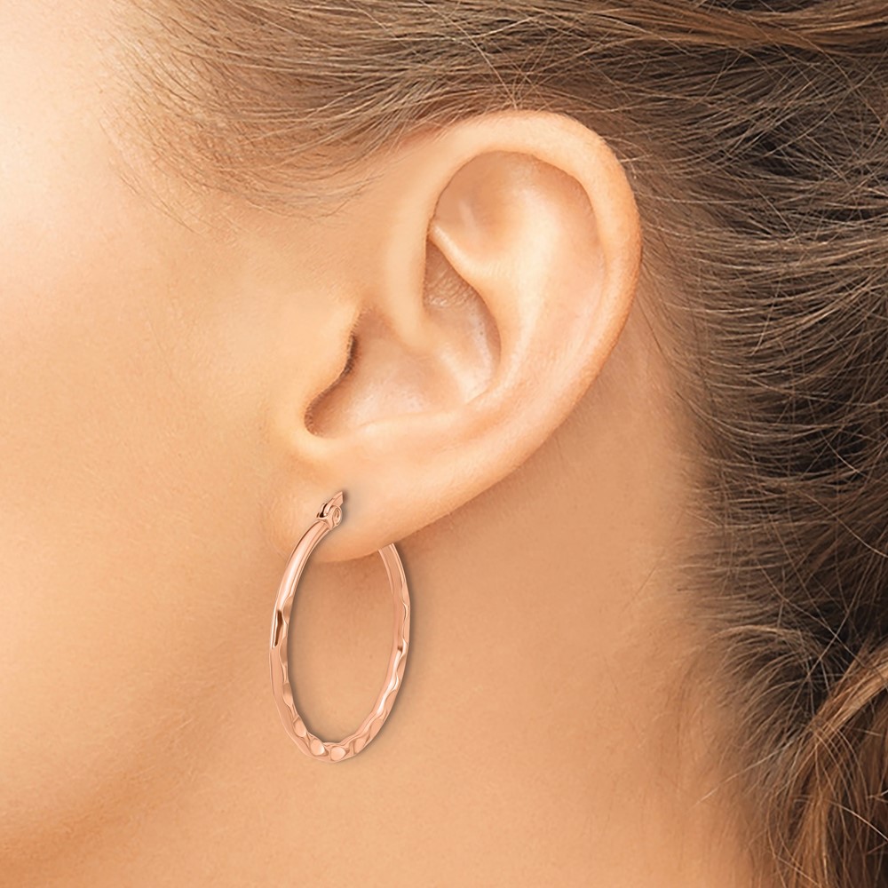 Chisel Stainless Steel Polished Rose IP-plated Wavy Hoop Earrings