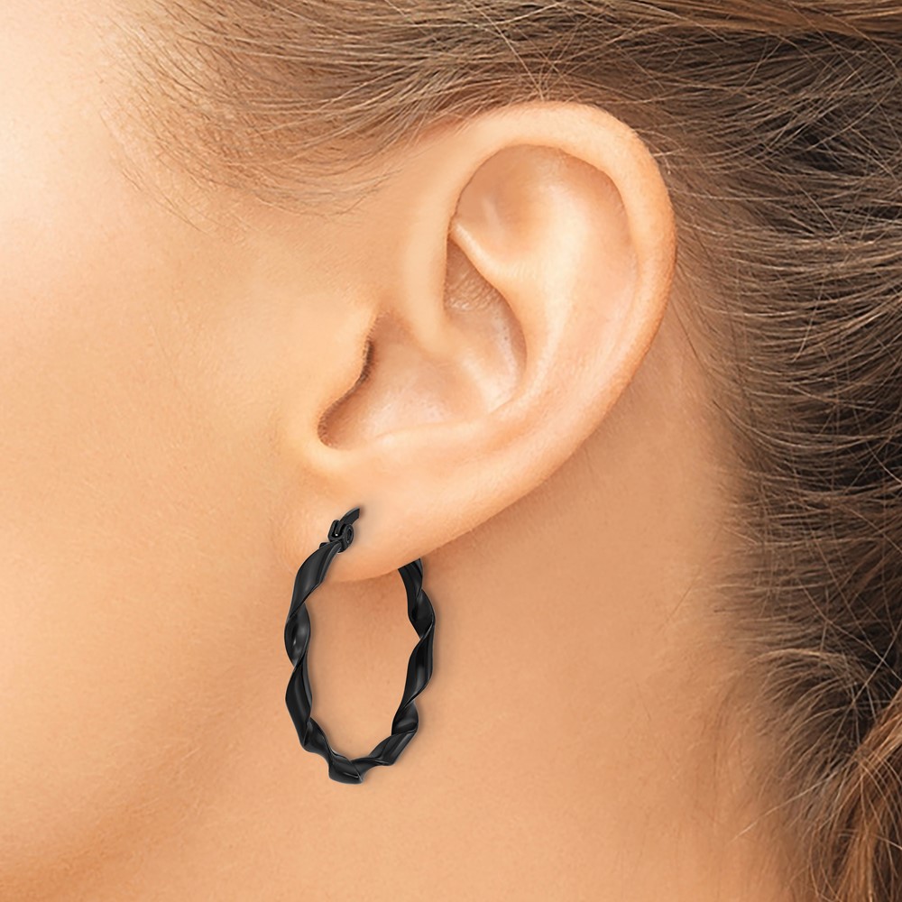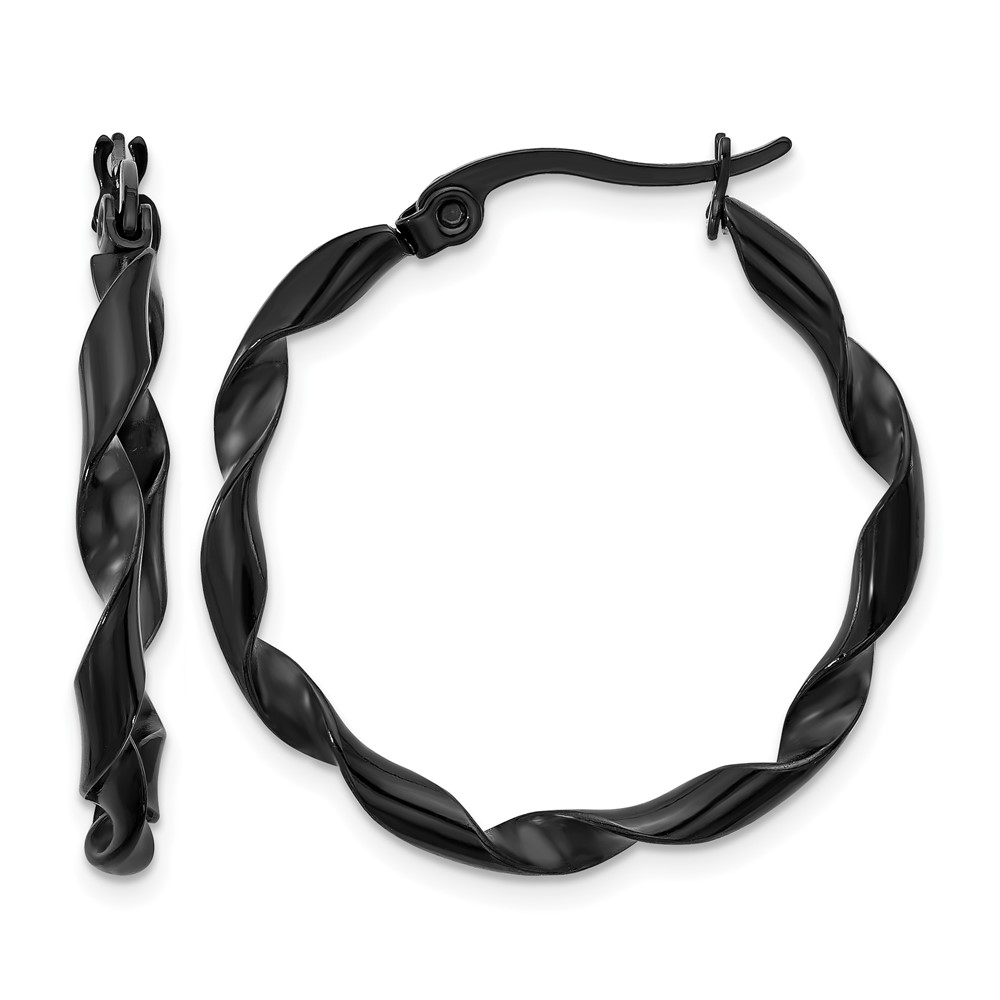 Chisel Stainless Steel Polished Black IP-plated Twisted Hoop Earrings