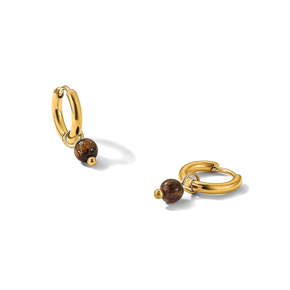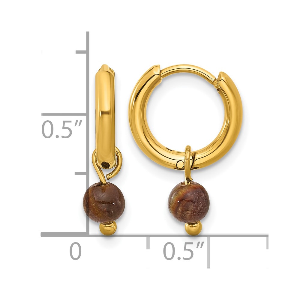 Chisel Stainless Steel Polished Yellow IP-plated with Removeable Tiger's Eye Dangle Hinged Hoop Earrings