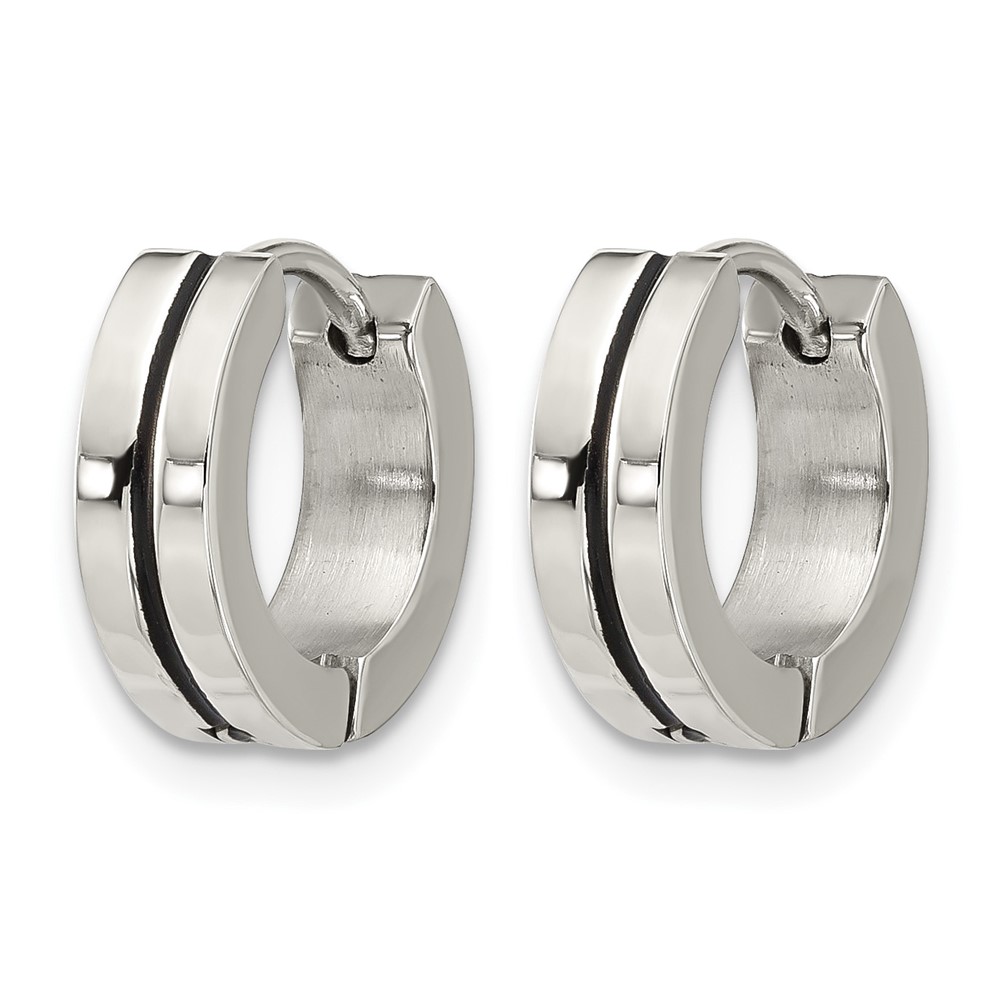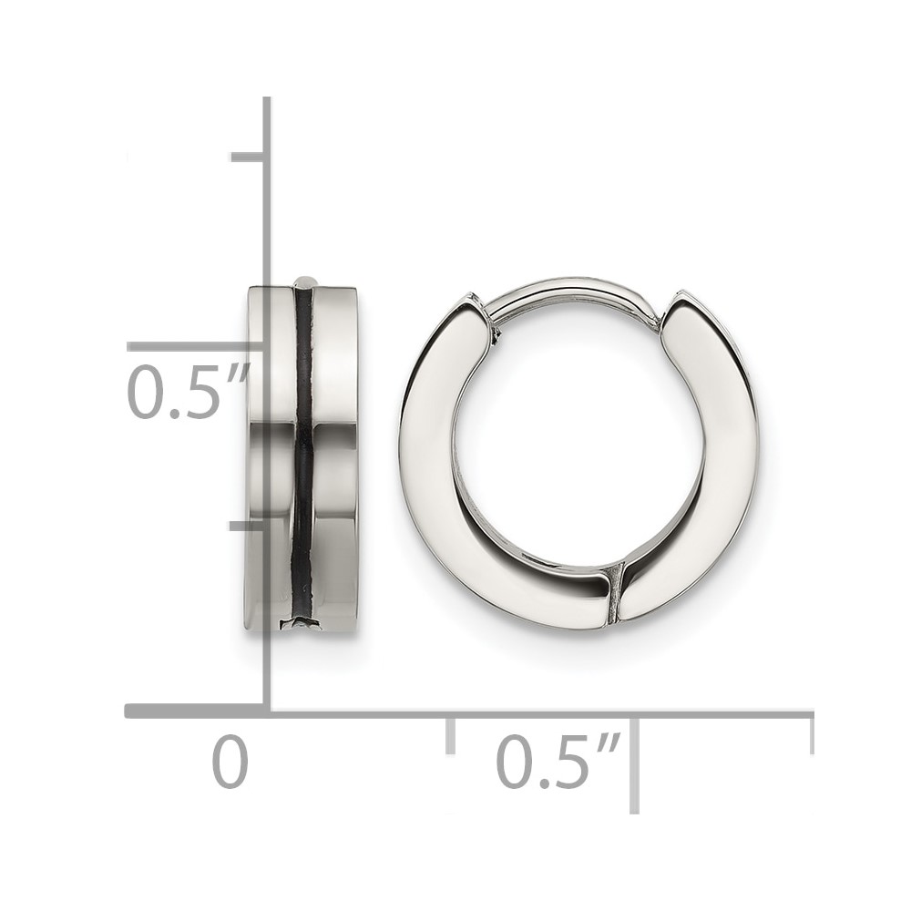 Stainless Steel Polished with Black Resin Center 4mm Hoop Earrings