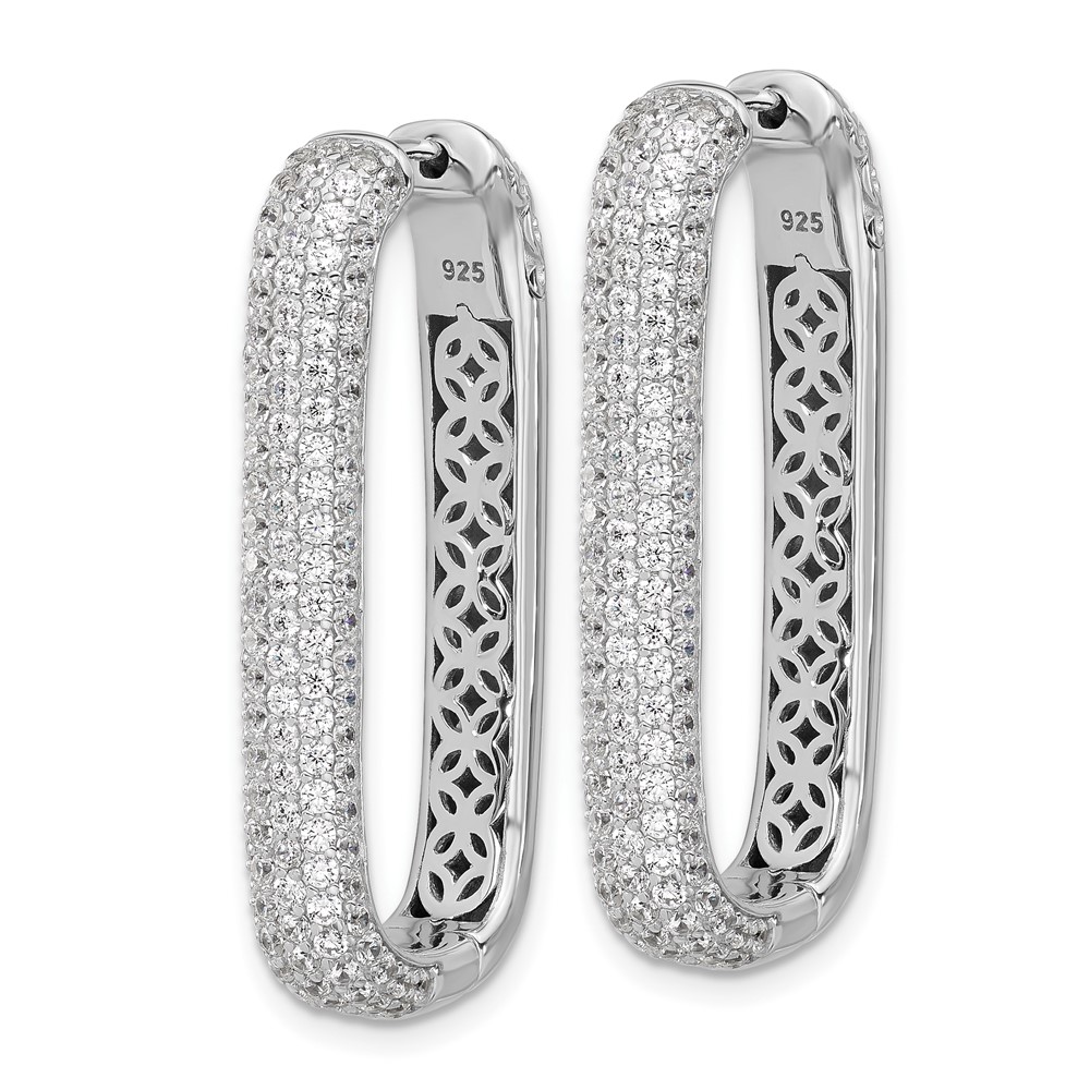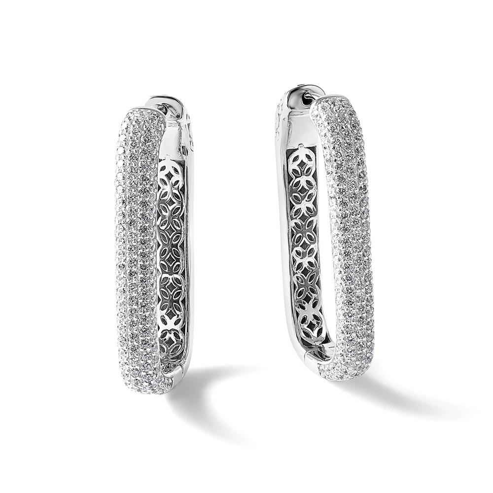 Sterling Shimmer Sterling Silver Rhodium-plated 1.3mm CZ 258 Stone Rectangle Hinged Hoop Earrings