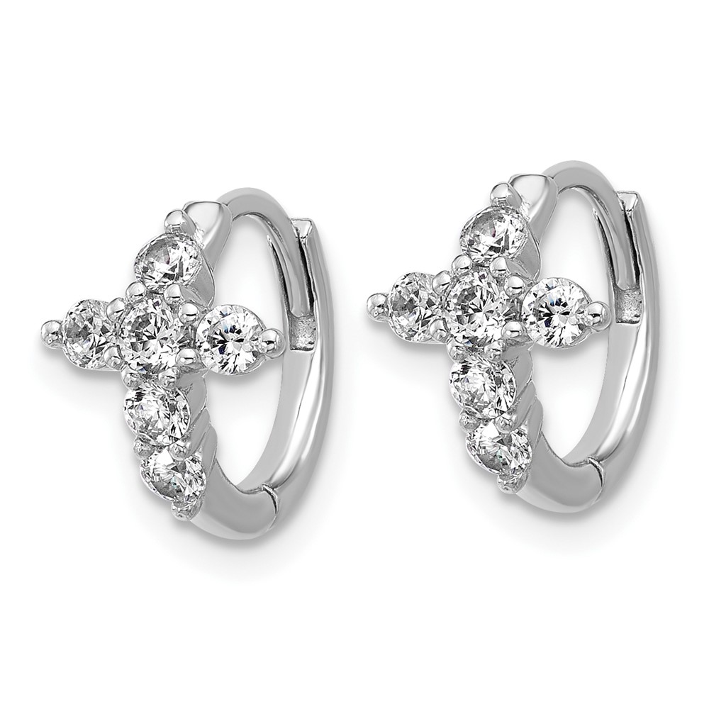Cheryl M Sterling Silver Rhodium-plated Polished CZ Cross Hinged Round Hoop Earrings