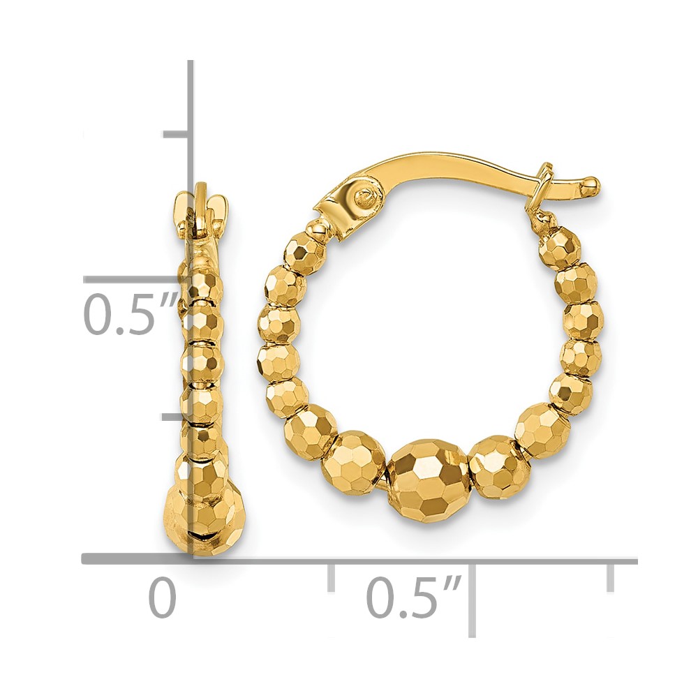 10k Polished 4.0 x 16mm Diamond-cut Beaded Hoop Earrings