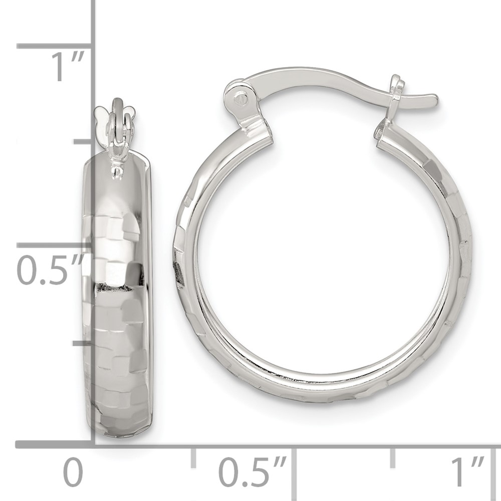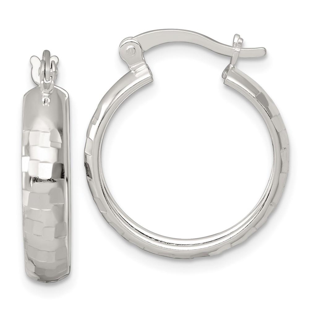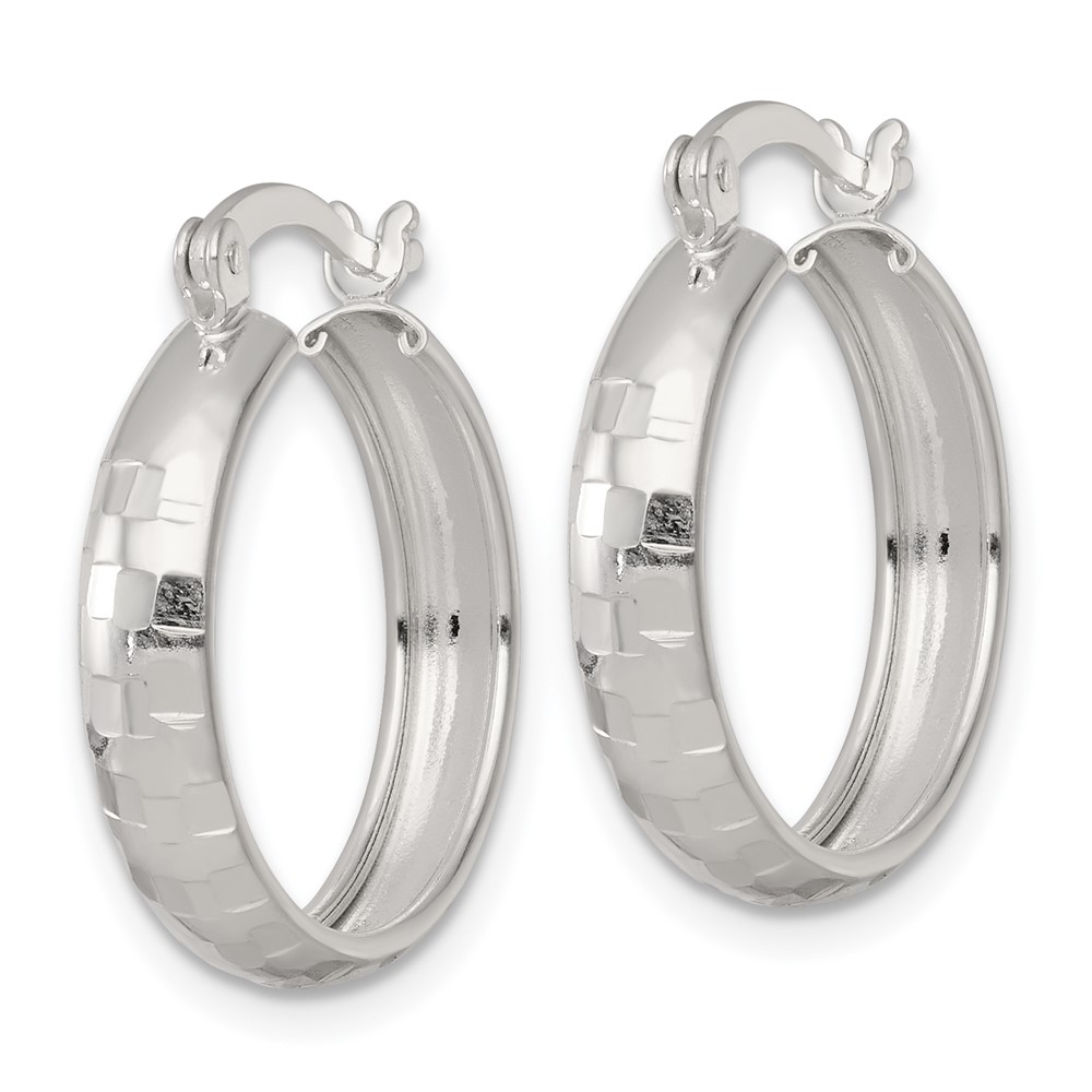 Sterling Silver 4.0mm Diamond-cut Hoop Earrings