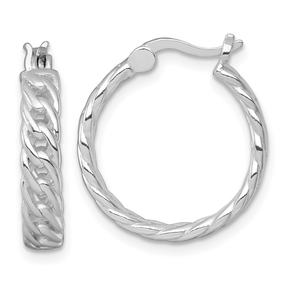Sterling Silver Rhodium-plated Polished 4.00 x 19mm Curb Link Round Hoop Earrings