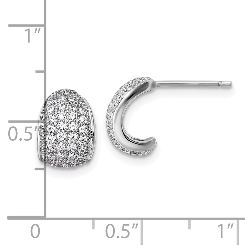 Sterling Silver Rhodium-plated CZ Pave Polished J-Hoop Post Earrings