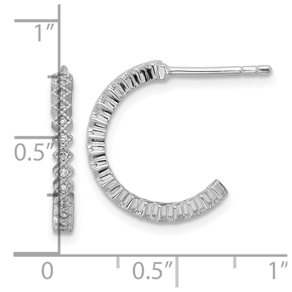 Sterling Silver Rhodium-plated CZ Polished J-Hoop Post Earrings