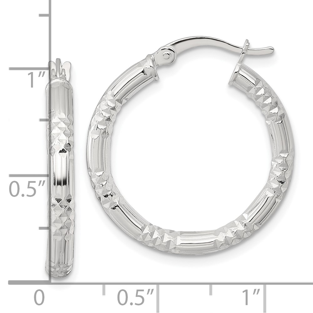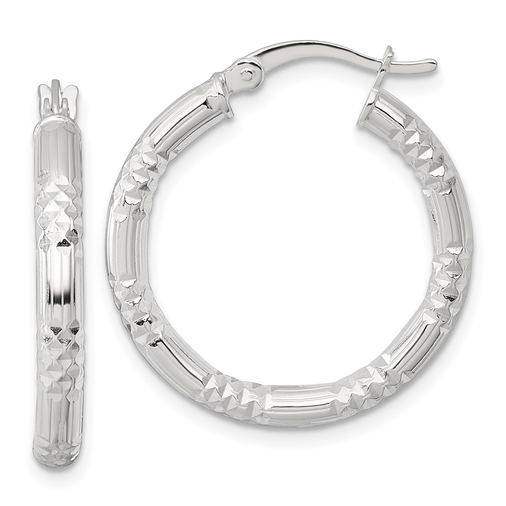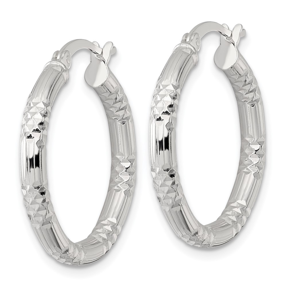 Sterling Silver 3.25mm Diamond-cut Hoop Earrings