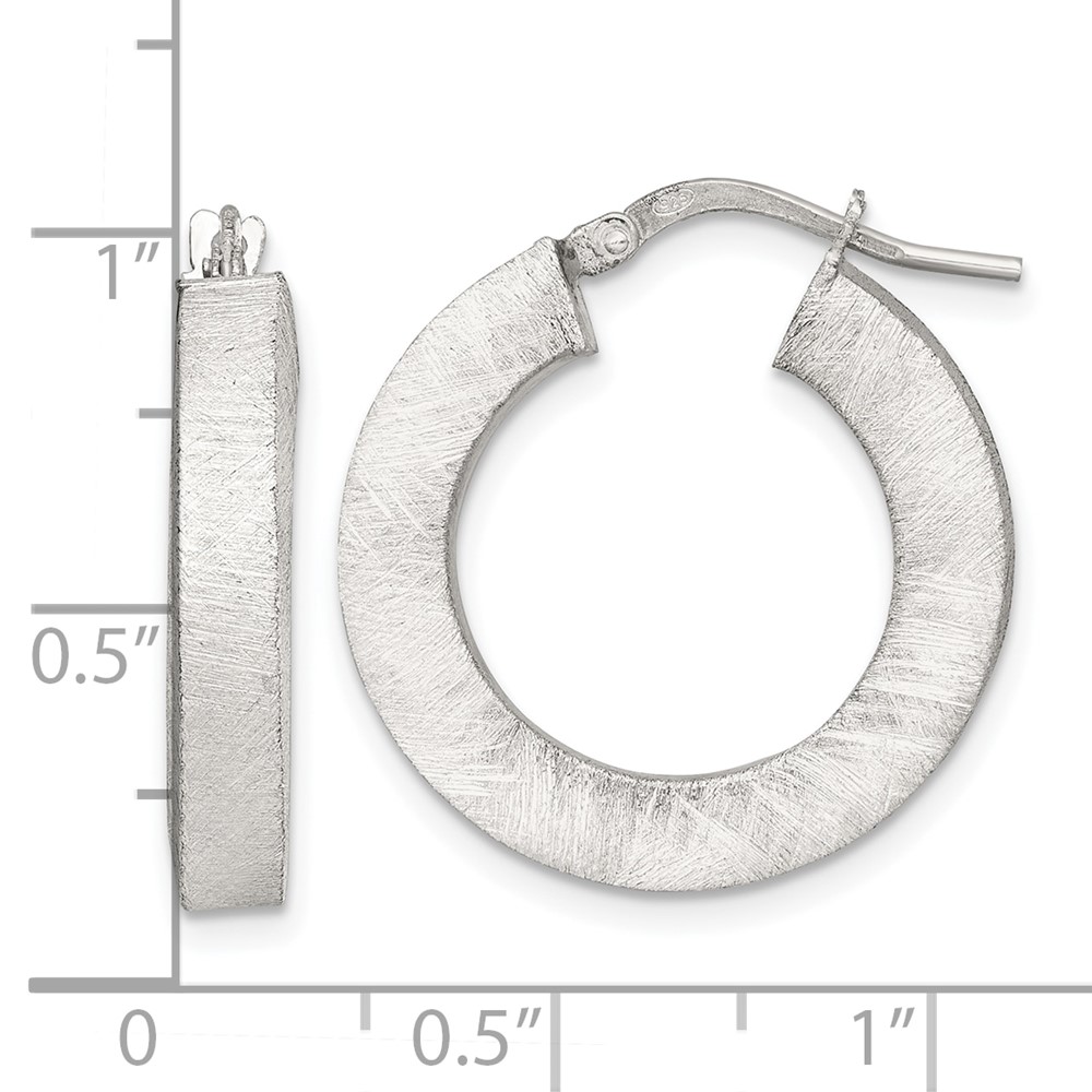 Sterling Silver 4.3mm Brushed Hoop Earrings