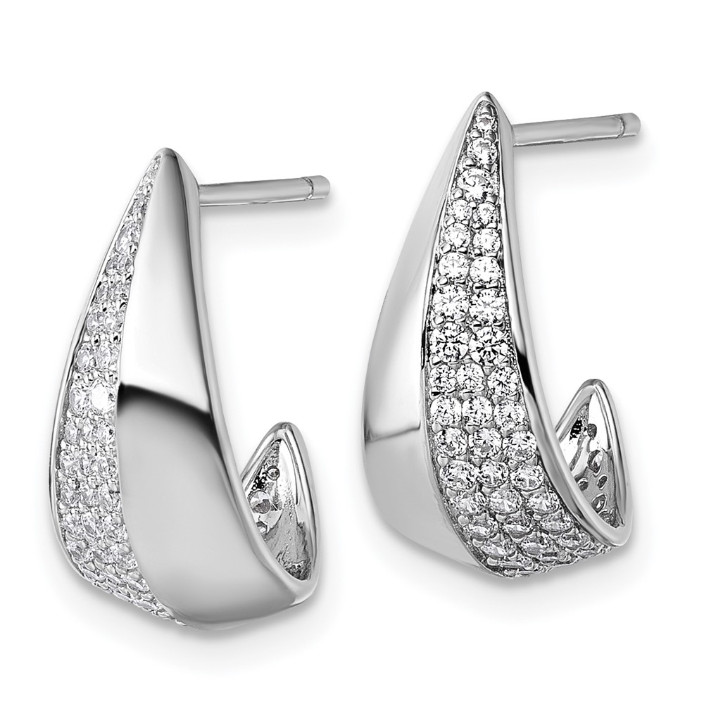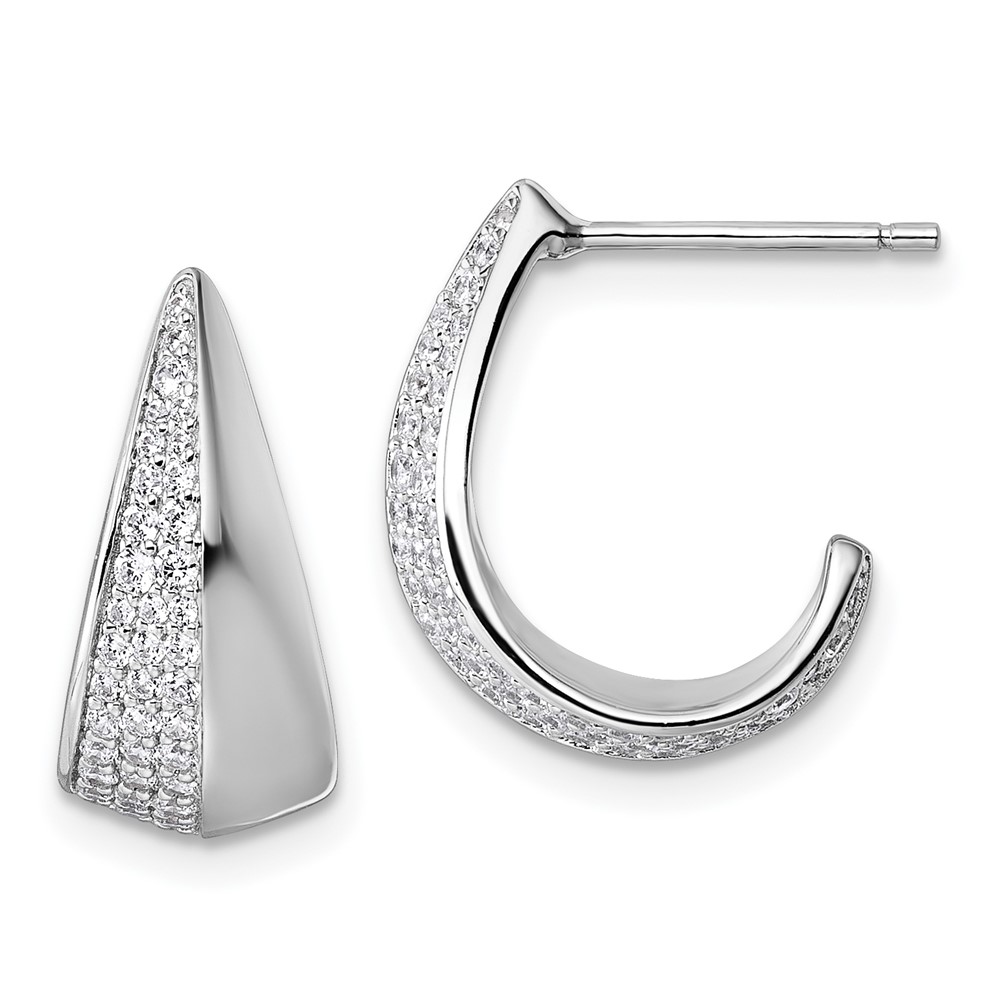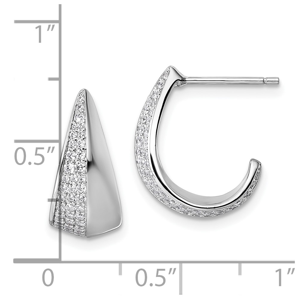 Sterling Silver Rhodium-plated CZ Polished J-Hoop Post Earrings