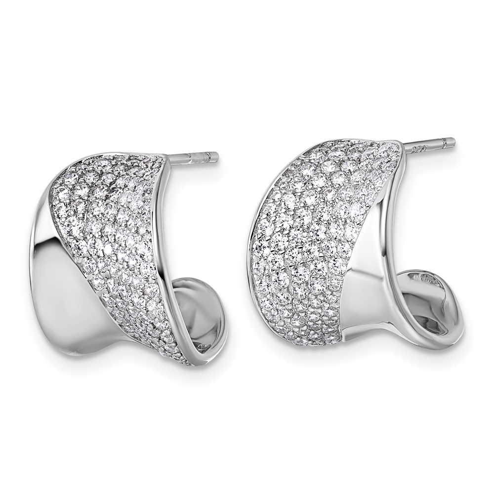 Sterling Silver Rhodium-plated CZ Polished J-Hoop Post Earrings