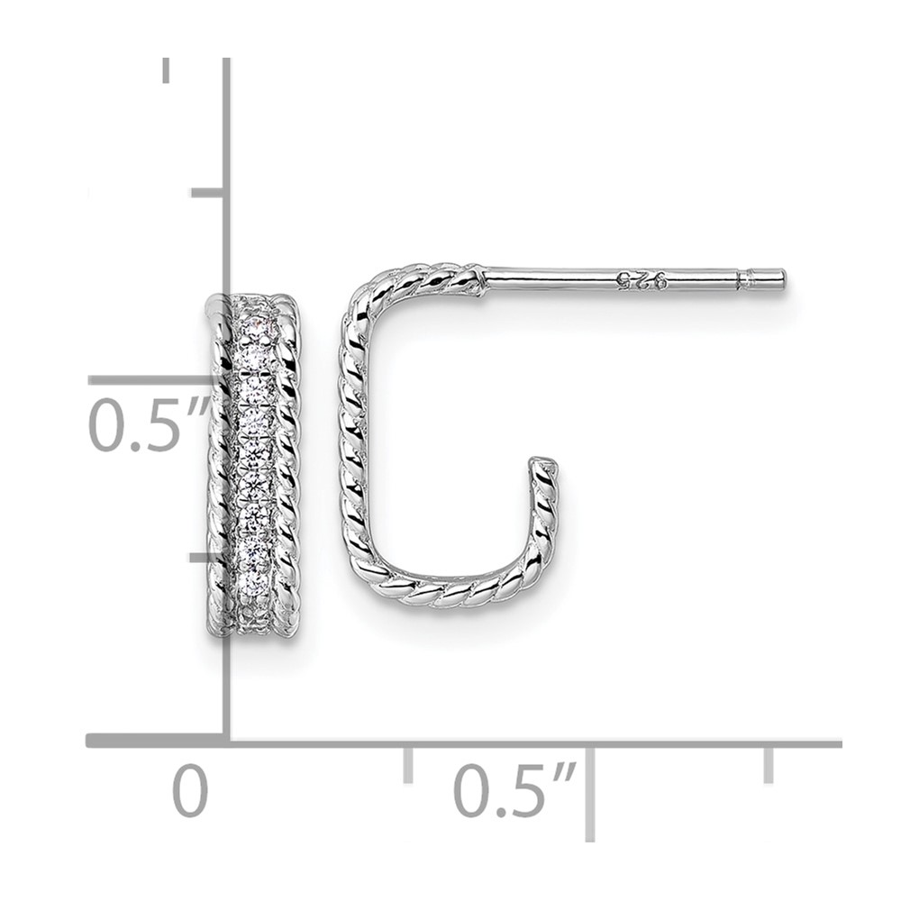 Sterling Silver Rhodium-plated CZ Rope Edge Rectangle J-Hoop Post Earrings