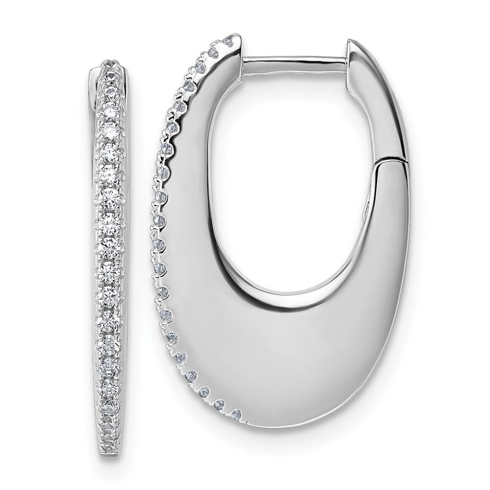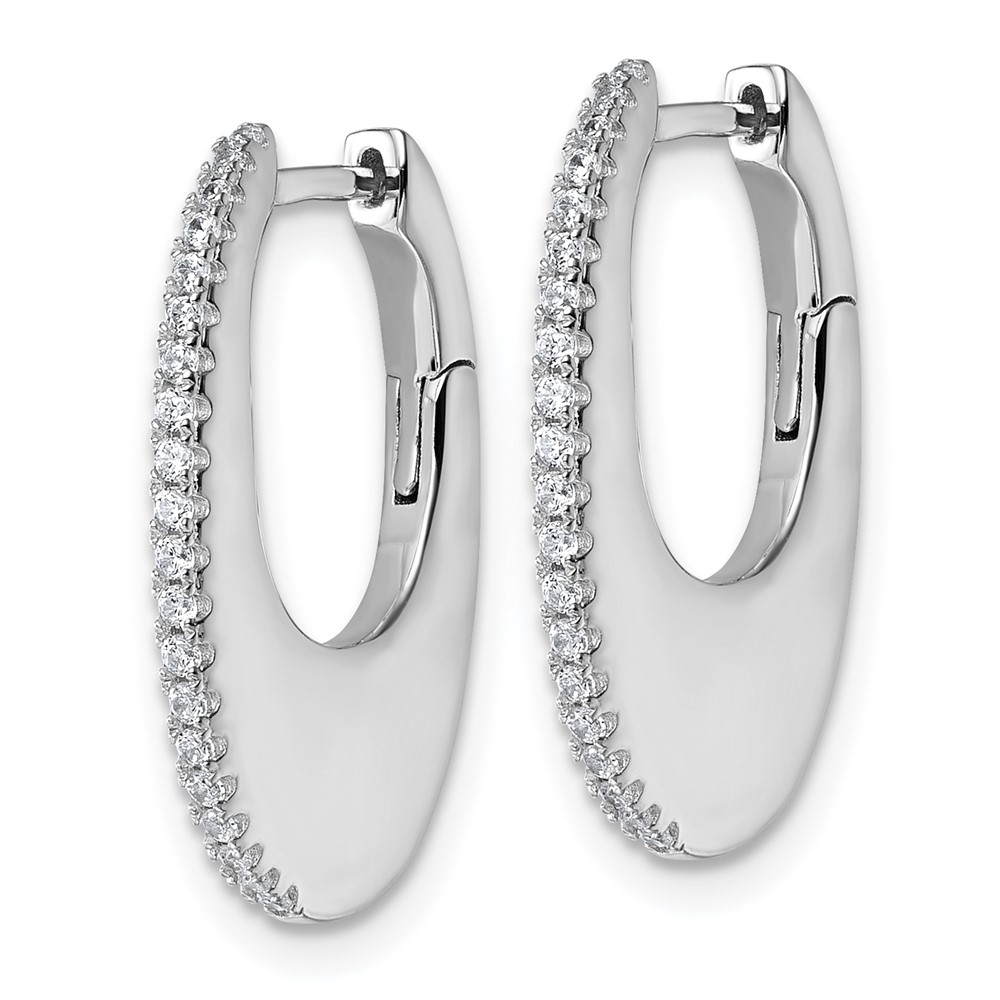 Sterling Silver Rhodium-plated CZ Polished Oval Hinged Hoop Earrings