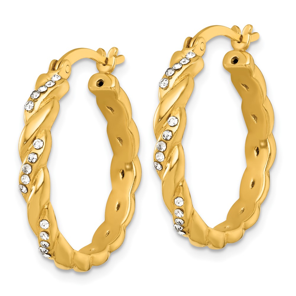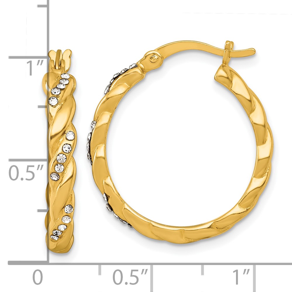 Sterling Silver Gold-tone Polished Twisted with Glass Stones Round Hoop Earrings
