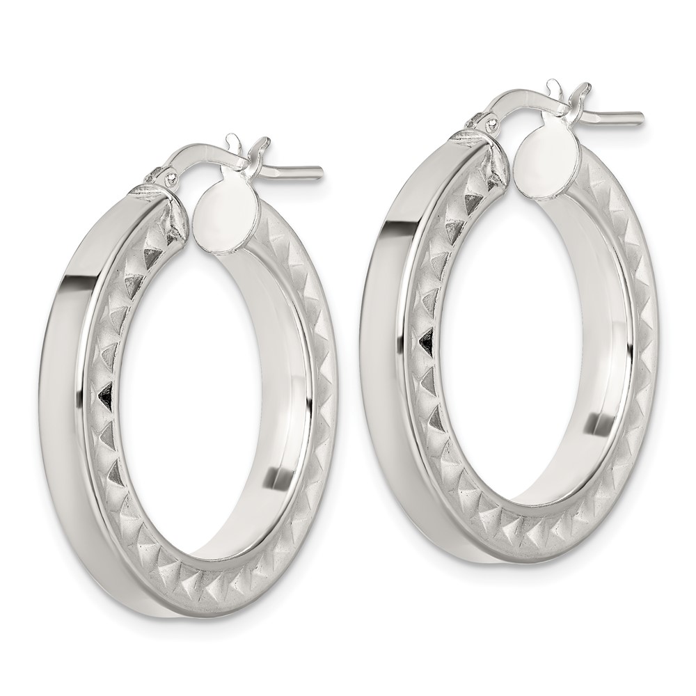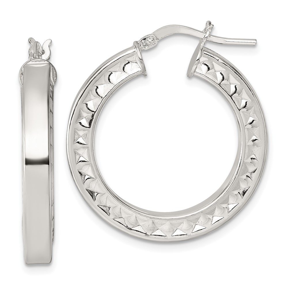 Sterling Silver Polished and Textured Hoop Earrings