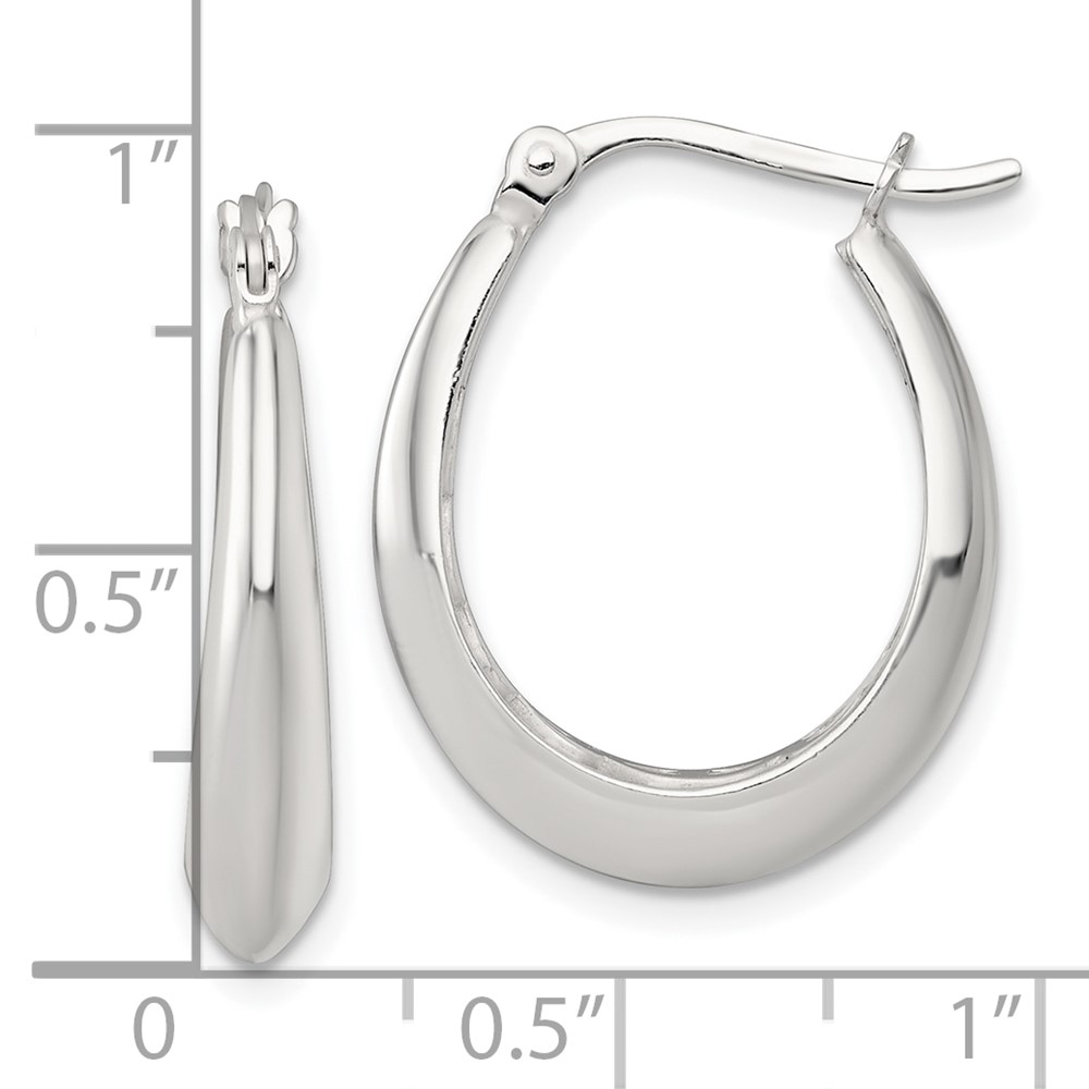 Sterling Silver Polished Knife Edge Tapered Oval Hoop Earrings