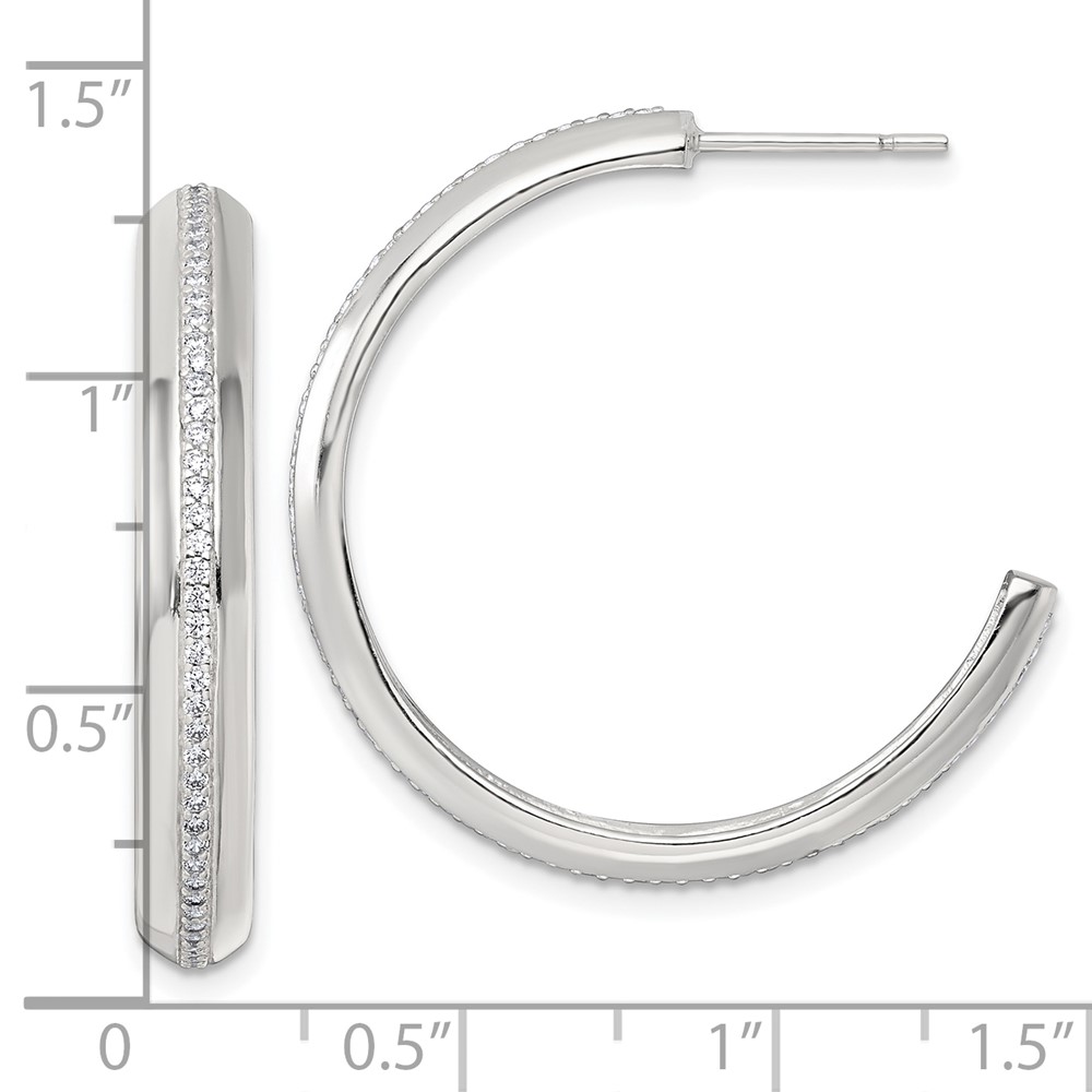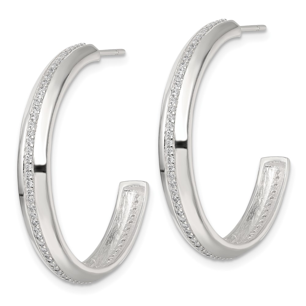 Sterling Silver Polished 4.75mm CZ Post C-Hoop Earrings