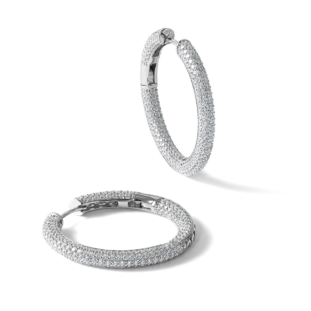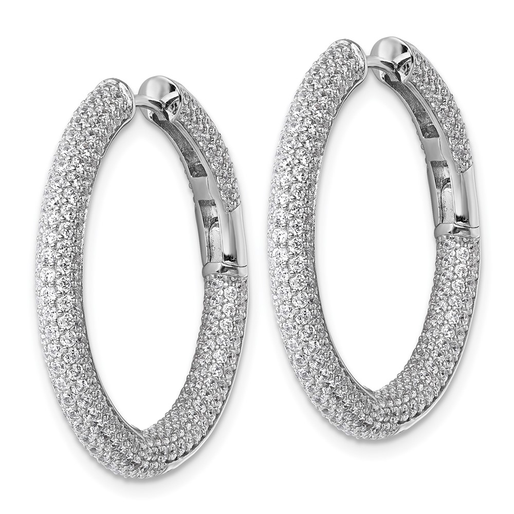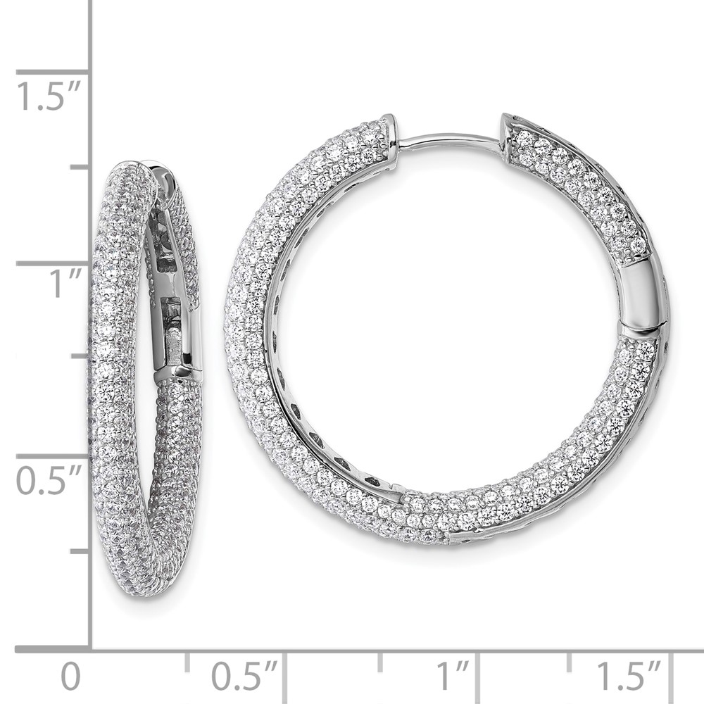Sterling Silver Rhodium-plated In and Out CZ Pave 3.1 x 29mm Hinged Hoop Earrings