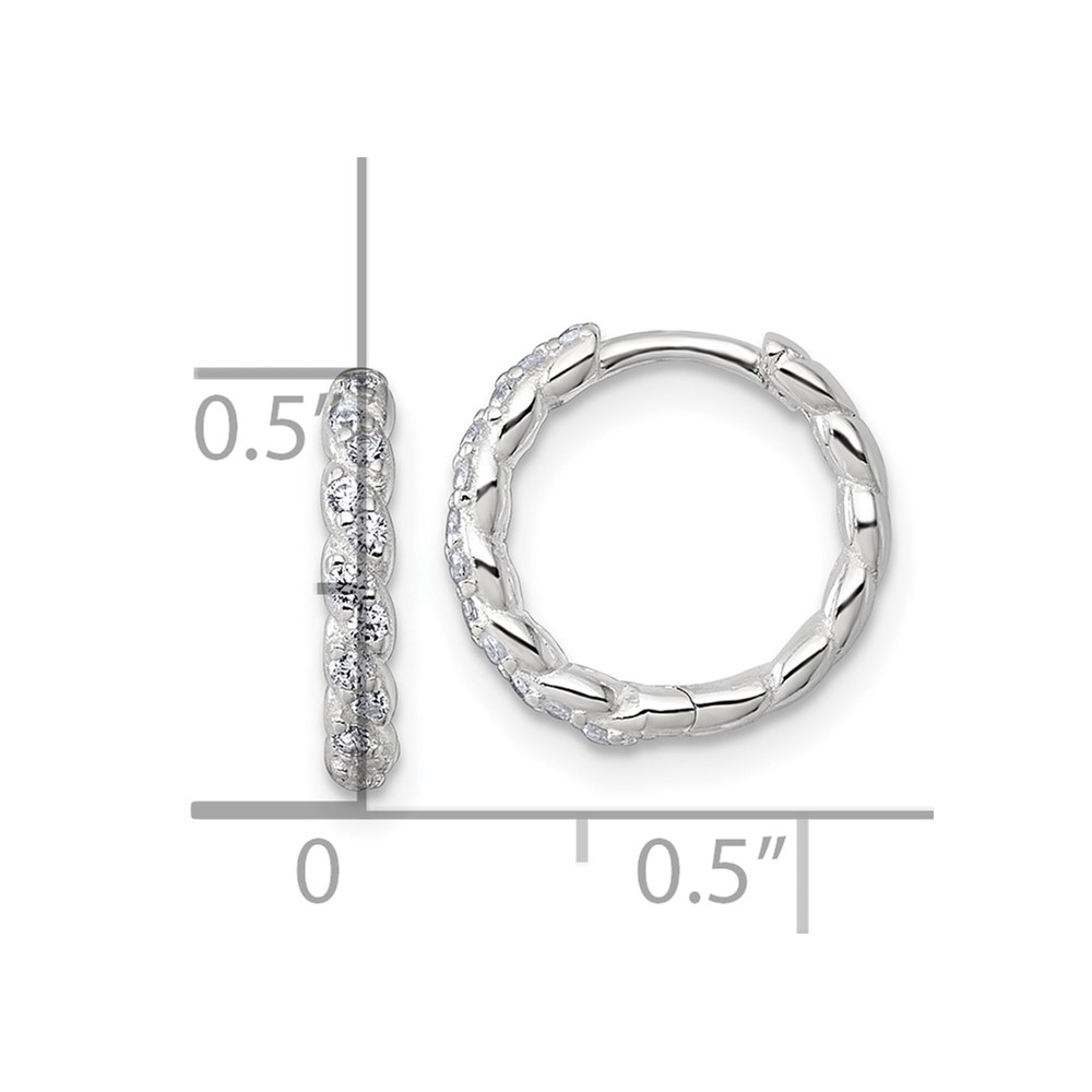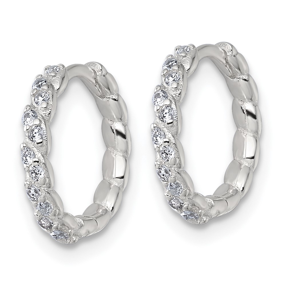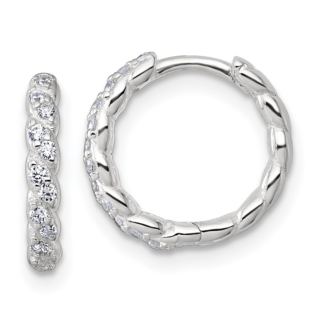 Sterling Silver Polished and Twisted 2.2mm x 12mm CZ Hinged Round Hoop Earrings