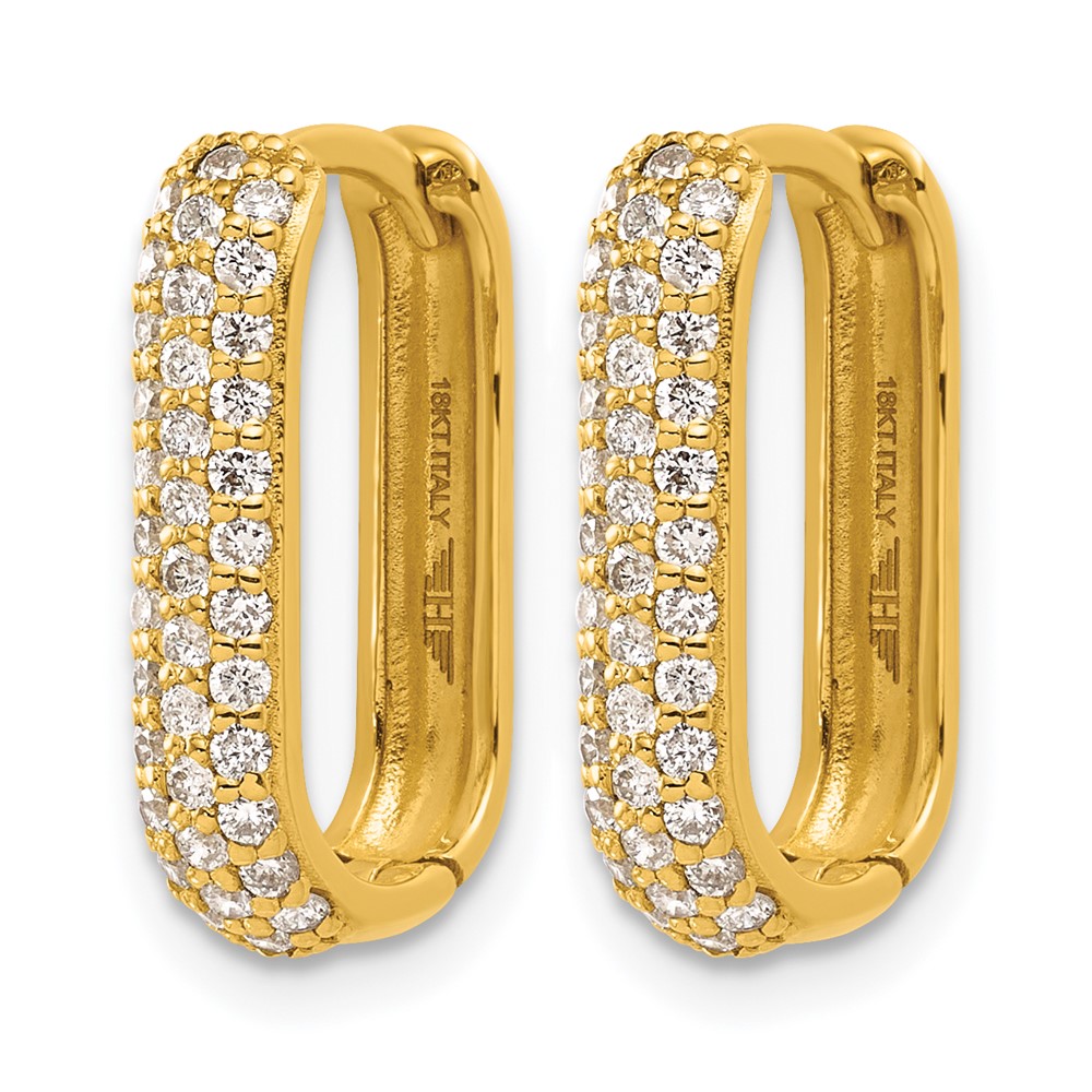 Herco 18K Polished Diamond 3.5mm Hinged Oval Hoop Earrings