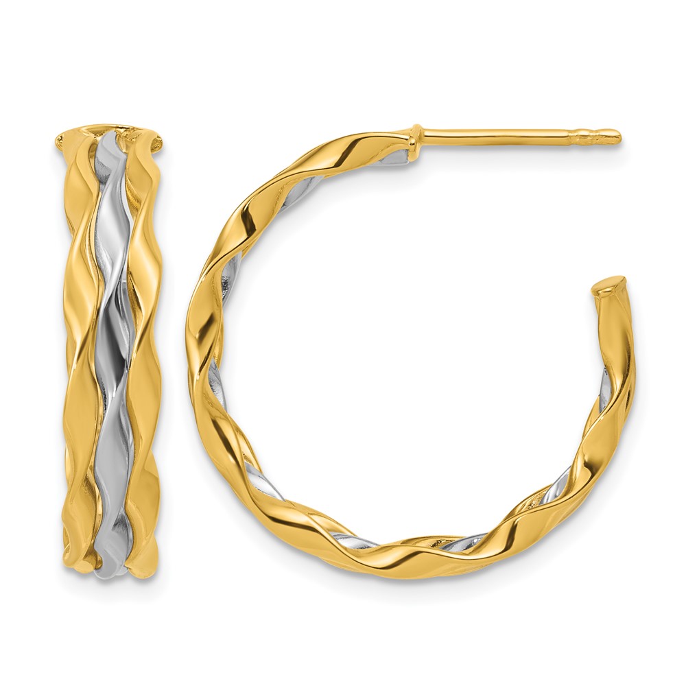 Leslie's 14K w/Rhodium Polished Wave J-Hoop Post Earrings