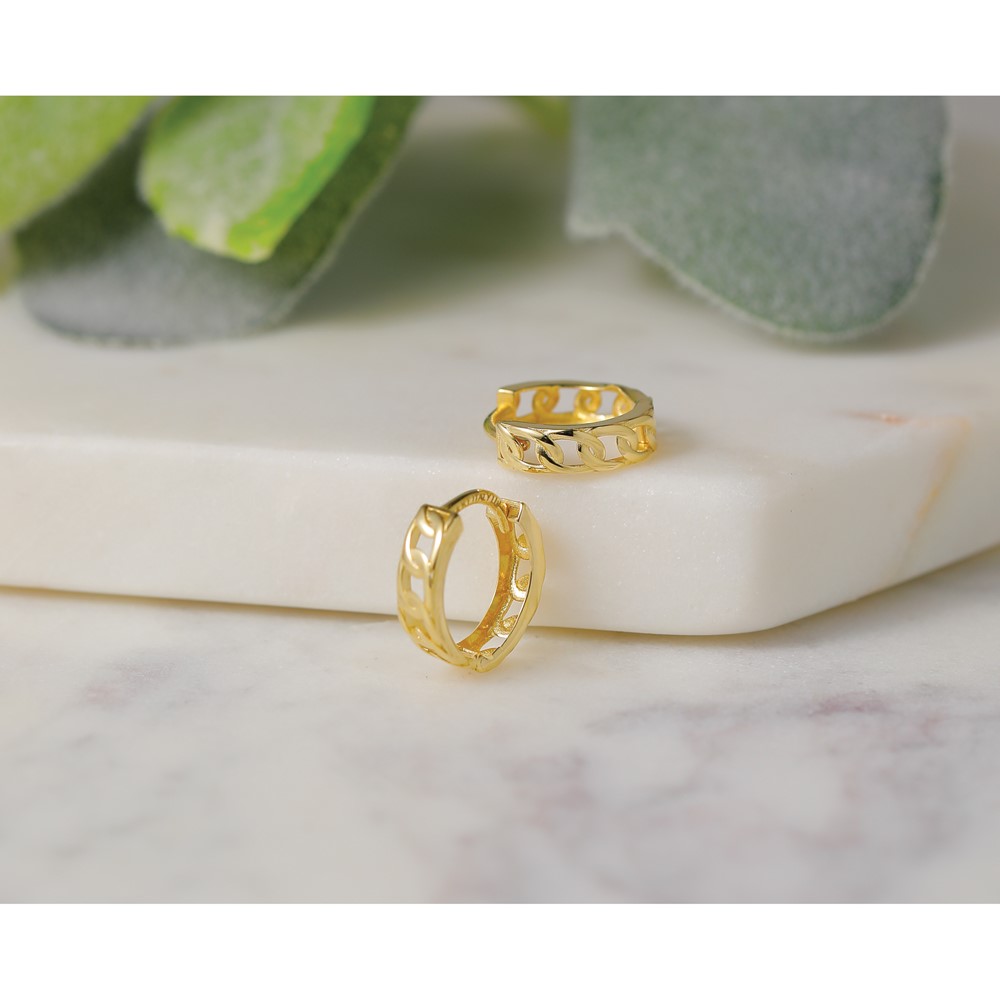 Leslie's 14K Polished Link Pattern Huggie Hoop Earrings