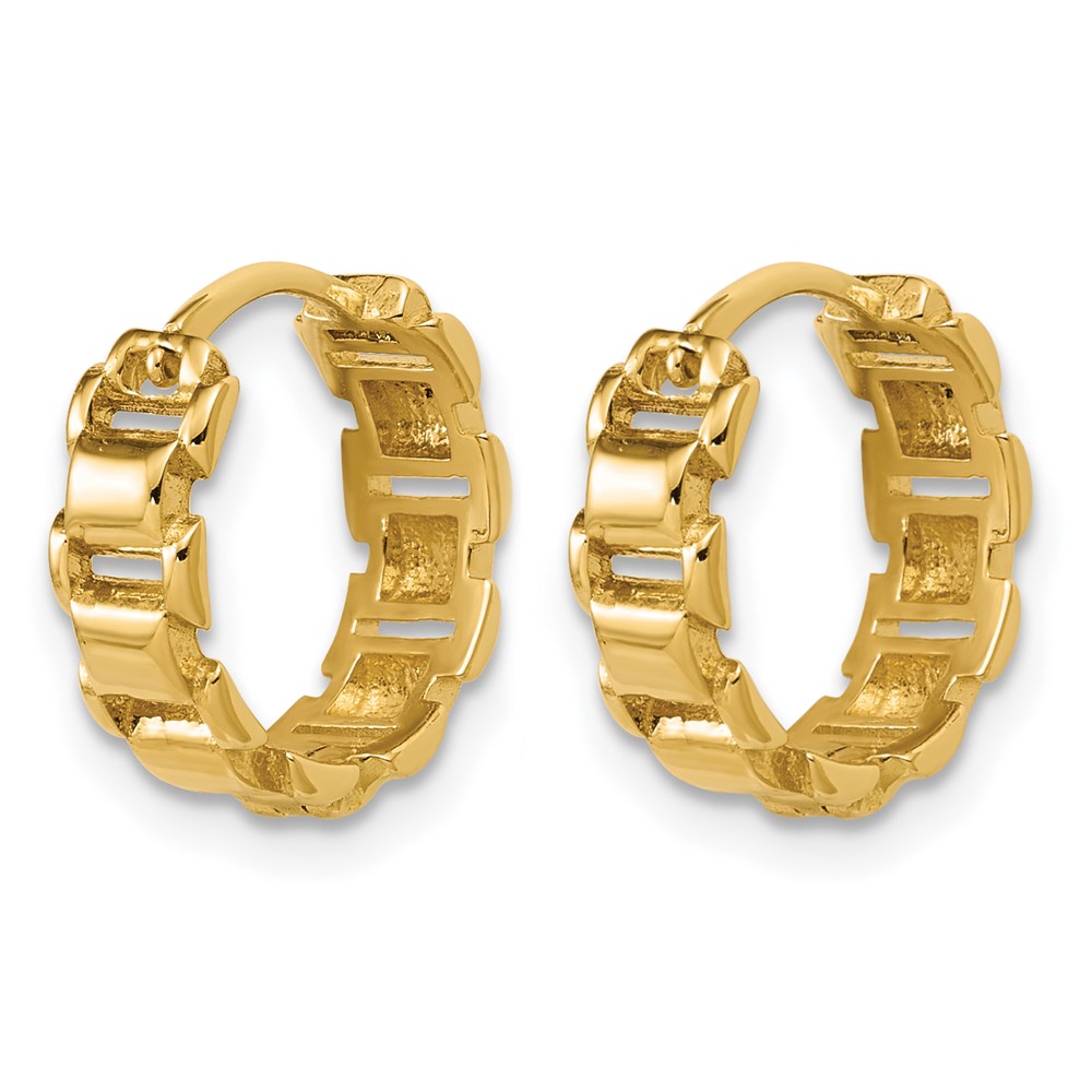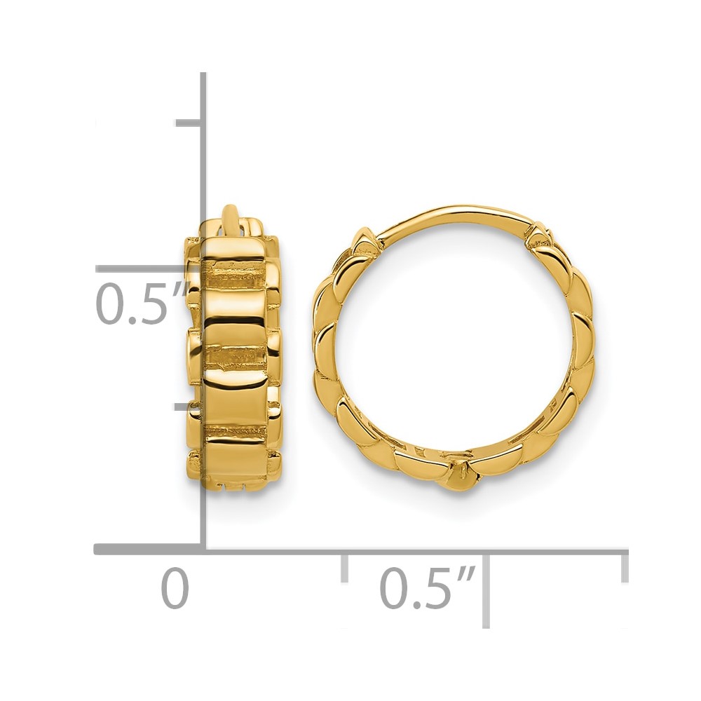 Leslie's 14K Polished Link Pattern Hinged Huggie Hoop Earrings