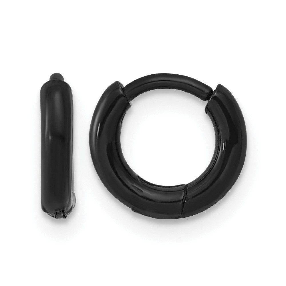 Stainless Steel Polished Black IP-plated Huggie Hoop Earrings