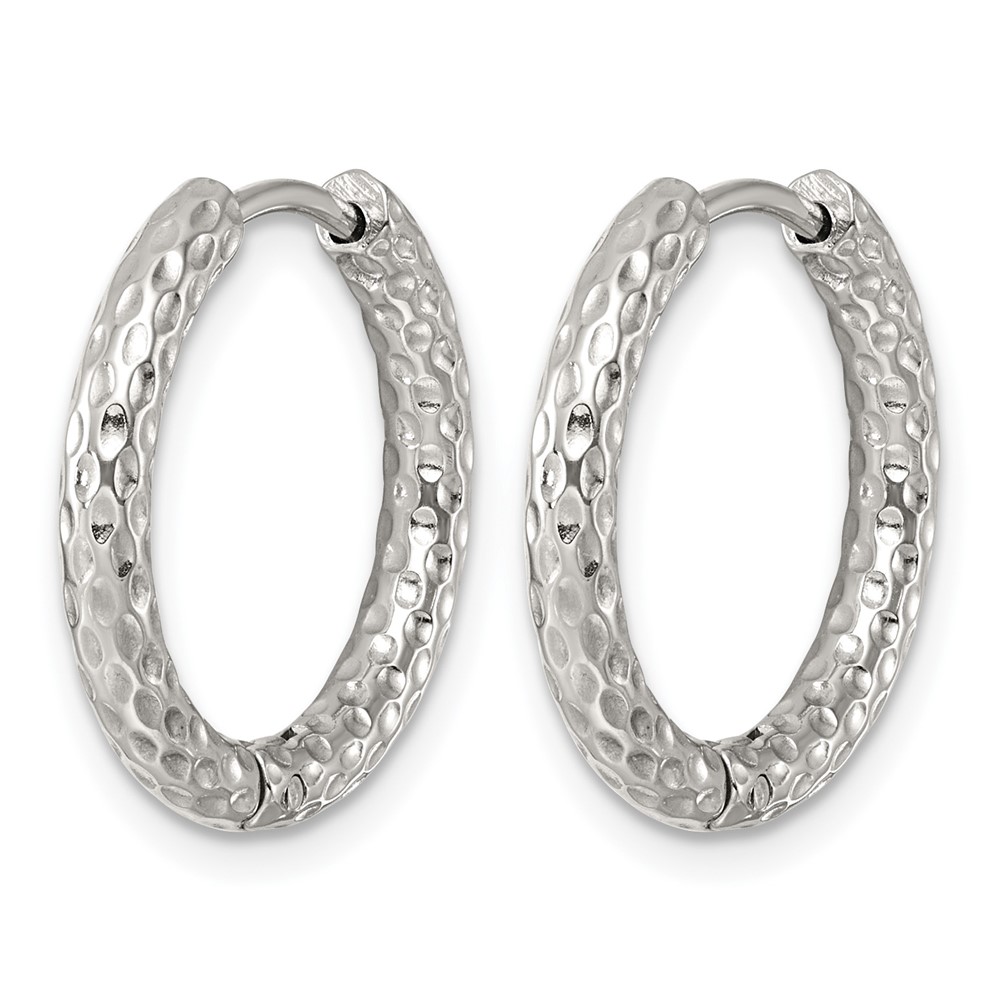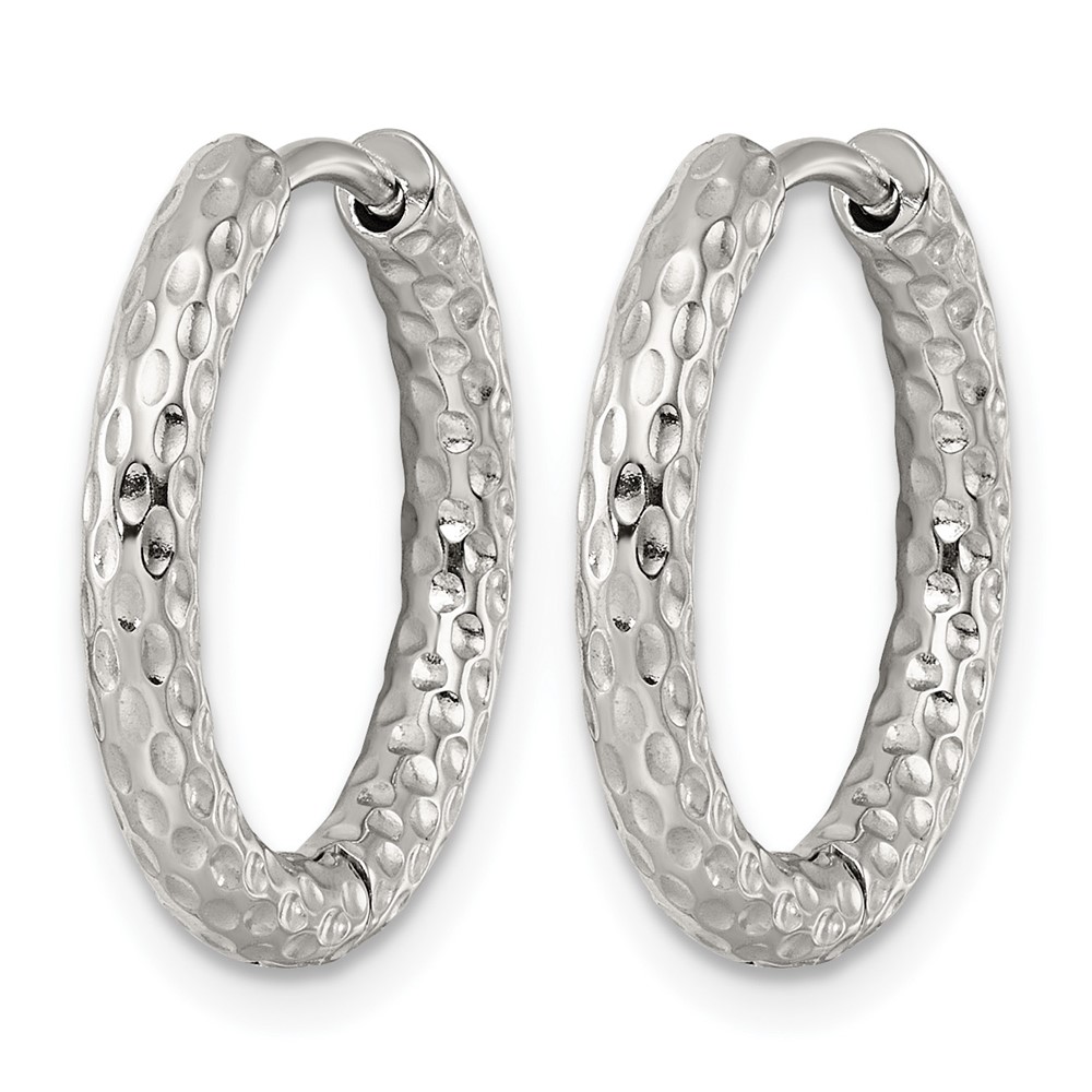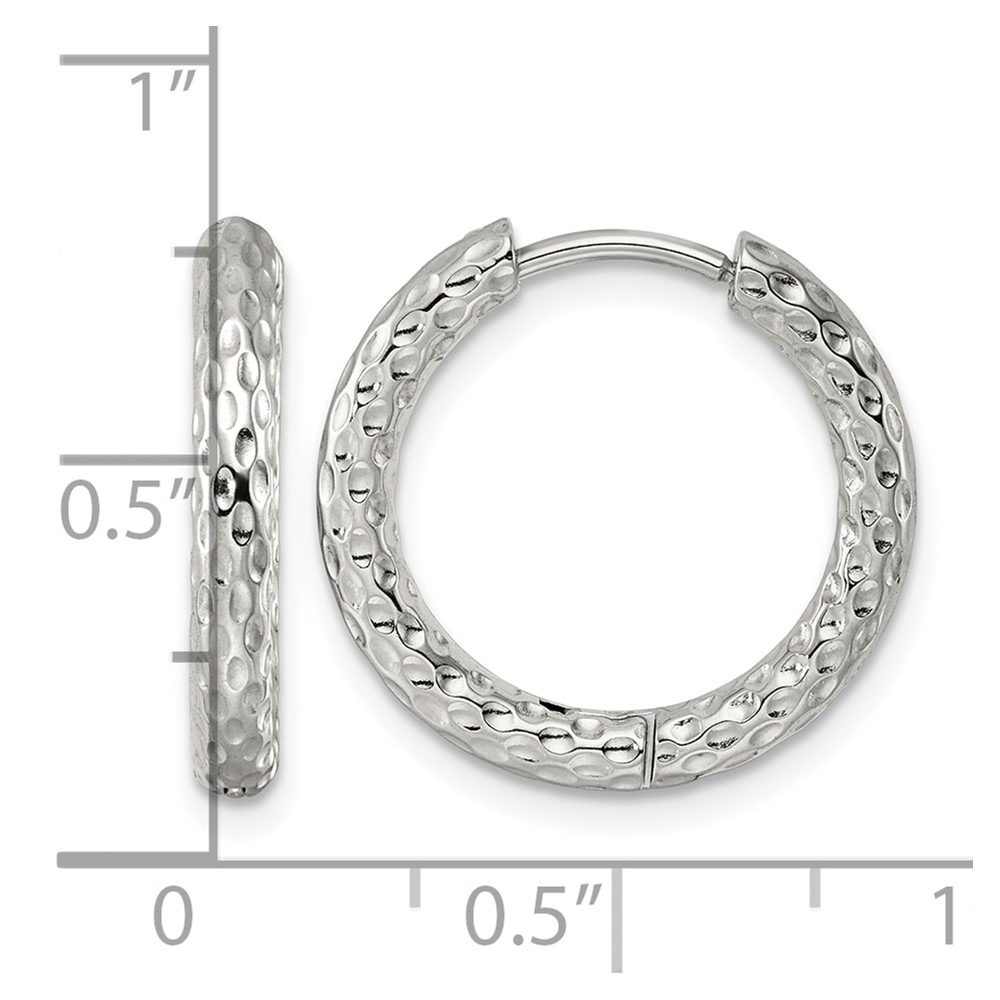 Stainless Steel Polished Textured Round Hinged Hoop Earrings