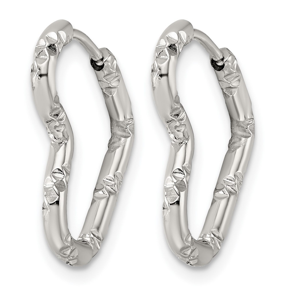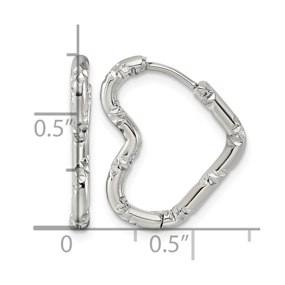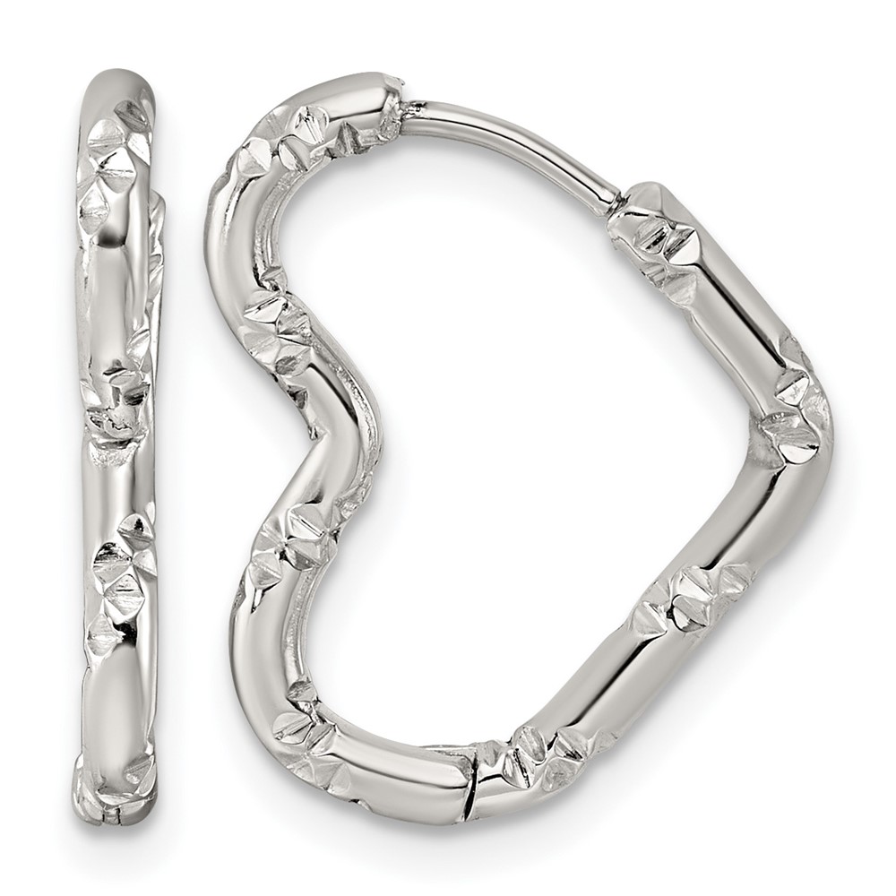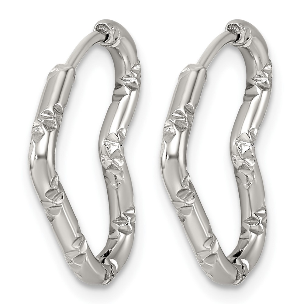 Stainless Steel Polished Bamboo Texture Heart Hinged Hoop Earrings