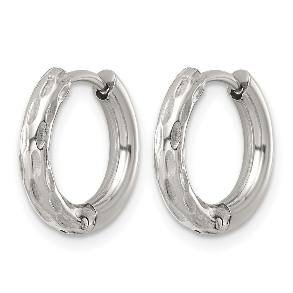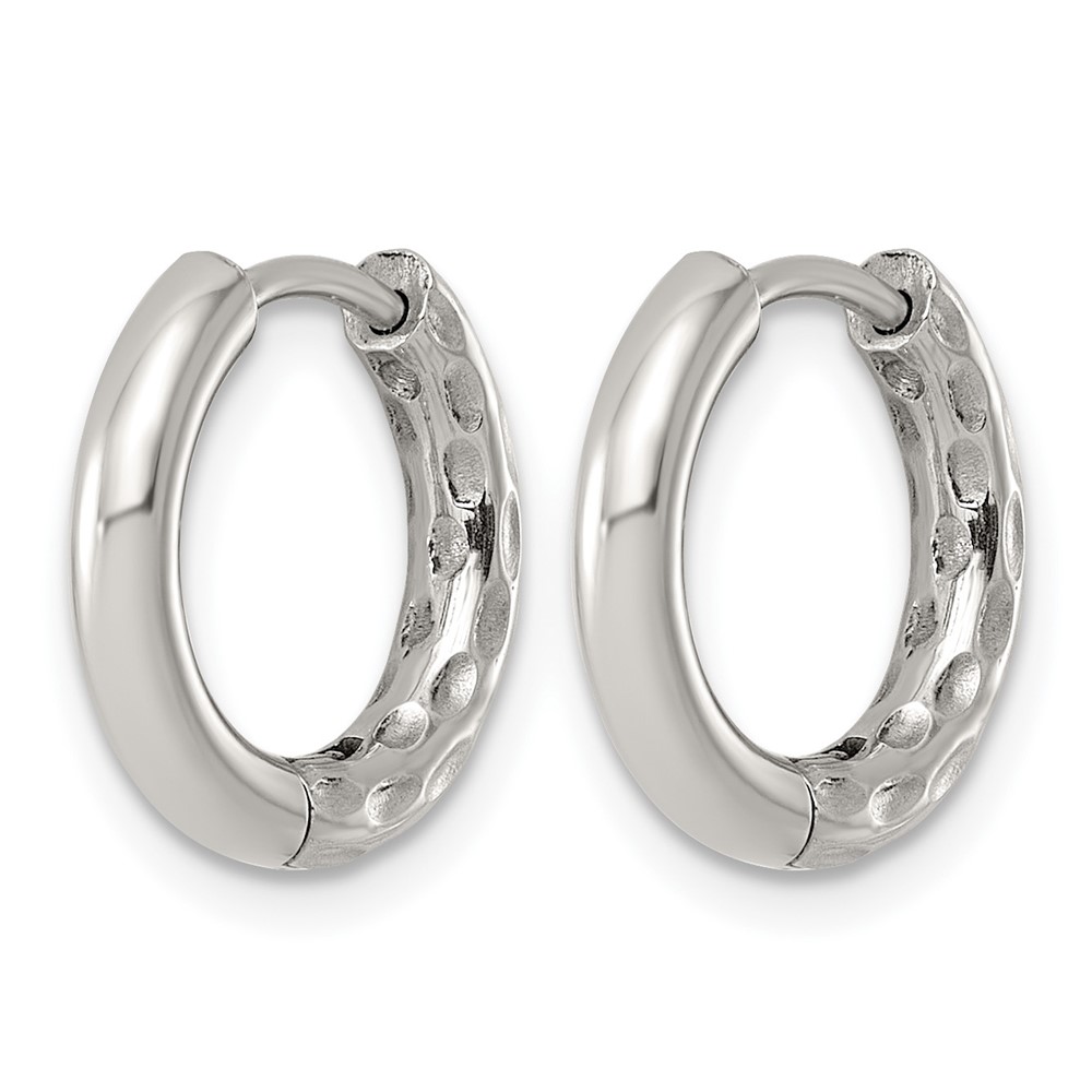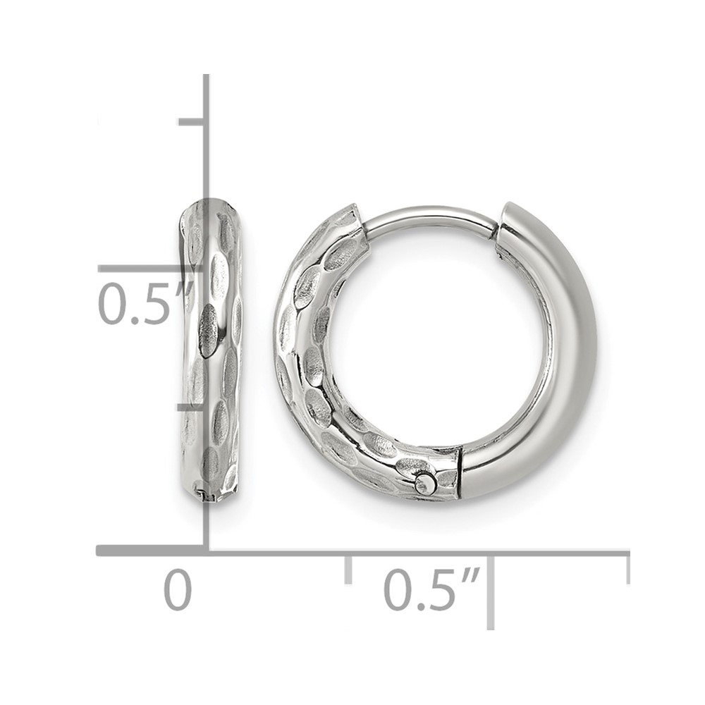 Stainless Steel Polished and Textured Circle Hinged Hoop Earrings